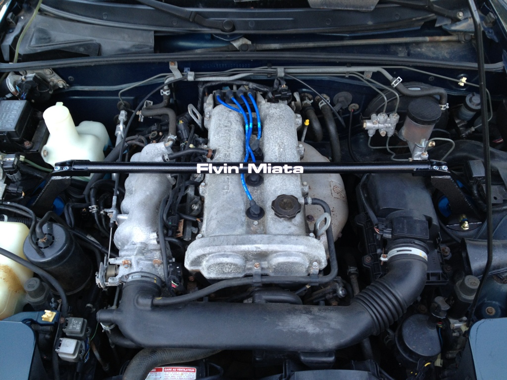NGK plugs and wires and a Flyin Miata shock tower brace.