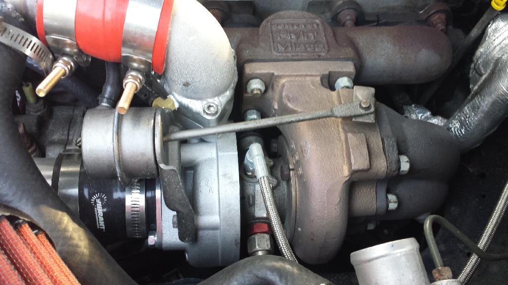 I just read through the whole thread for the first time since I now have a 97 montego that I am planning on boosting with the same t25 that you are running. Overall it looks very well done. There are a few small things that I would have done differently. I would have gotten the car running on the MS before starting any of the other installation process. It just makes it easier to track down problems with doing the install in stages. Secondly I would have used a different clutch. This just comes from seeing cheaper clutches fail, and then having to redo the work. To me its worth a bit extra to know I am buying quality parts.