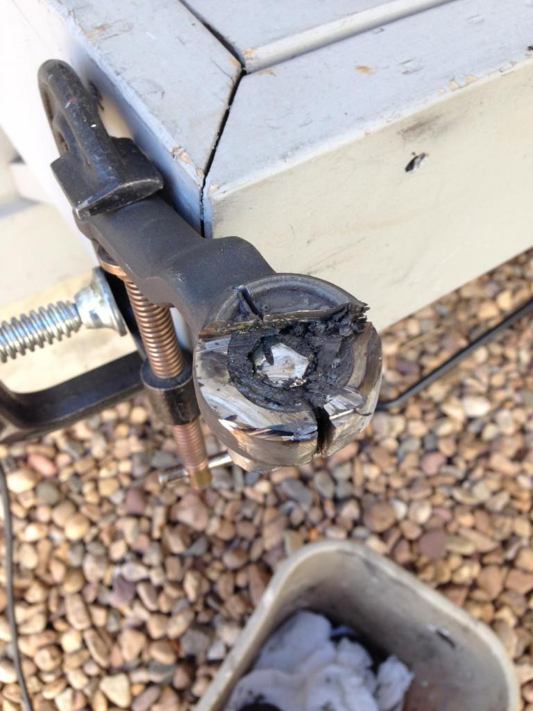 As seen in previous posts, the front rotors were hitting the outer tie rod ball joint when I installed them, so I lightly grinded the ball joints and finished installing the brakes. When I drove around to break in the pads there was a horrible grinding noise when the car would hit bumps and when I was turning the wheel. After getting the car back in the garage I realized I didn't clearance enough room for the ball joints as the suspension moved and when the steering wheel was turned. I gouged the **** out of my rotors