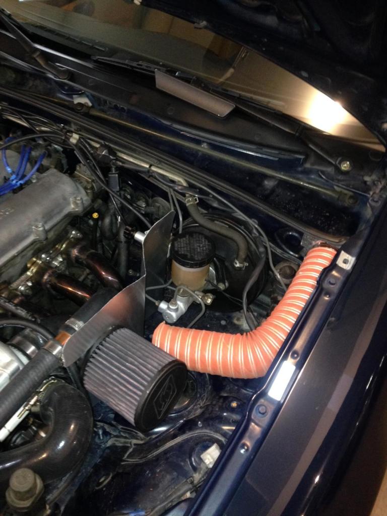 Made a cowl CAI thing- I'll see if this works, then maybe finish boxing in the filter if I find some more aluminum: