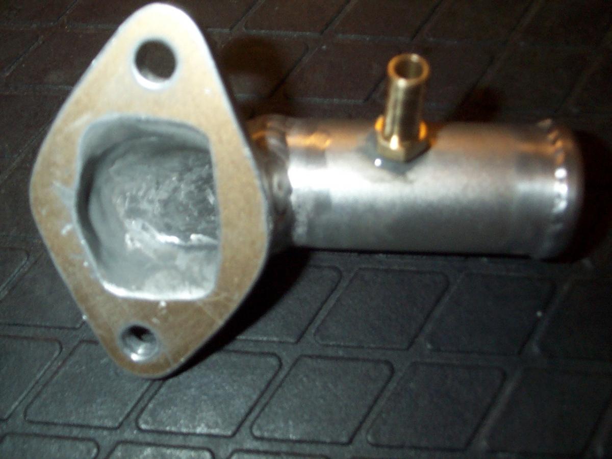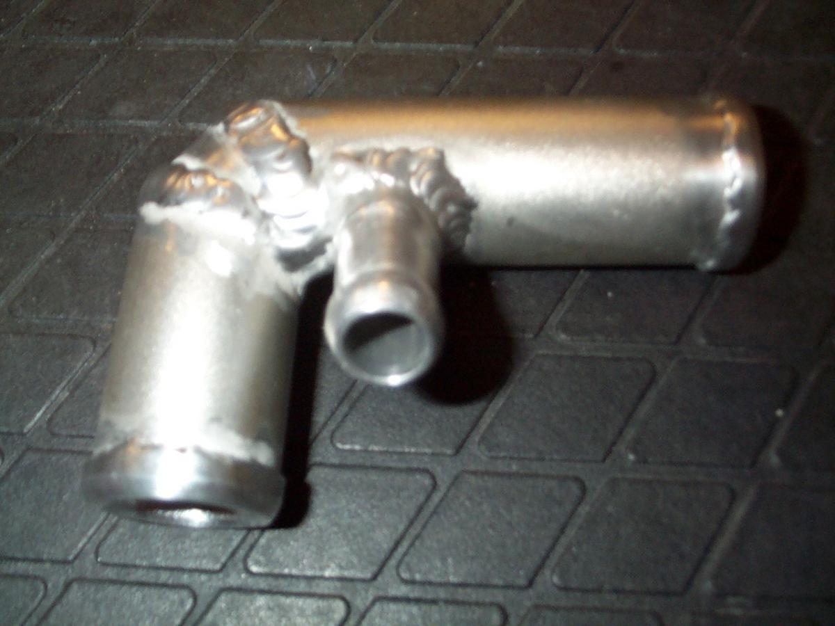 Elbow for coolant radiator to intake with heater hose nipple.