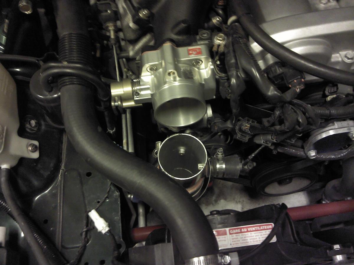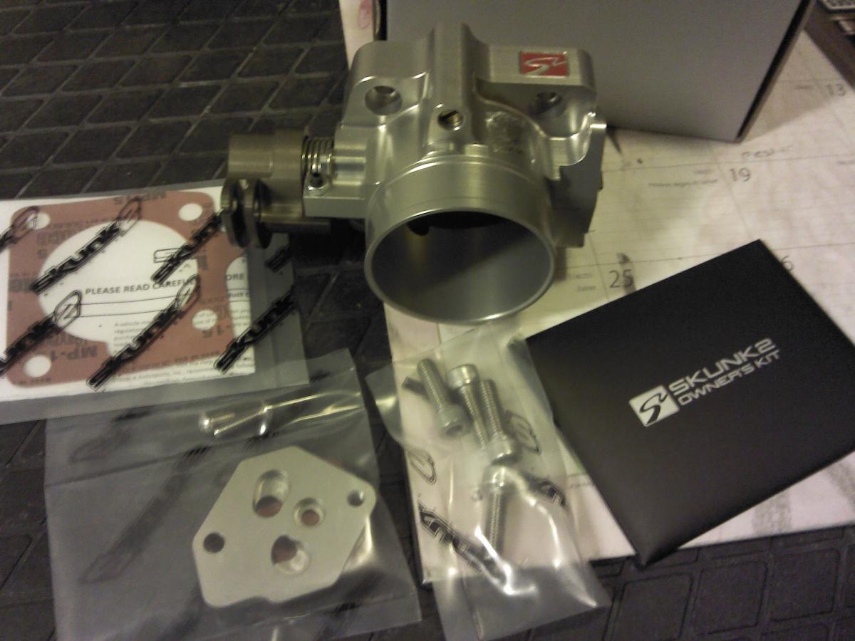 Here's the latest toy added to the car. After reading about screws being injested from the stock TB, I decided to get the Skunk2 TB for added insurance.
