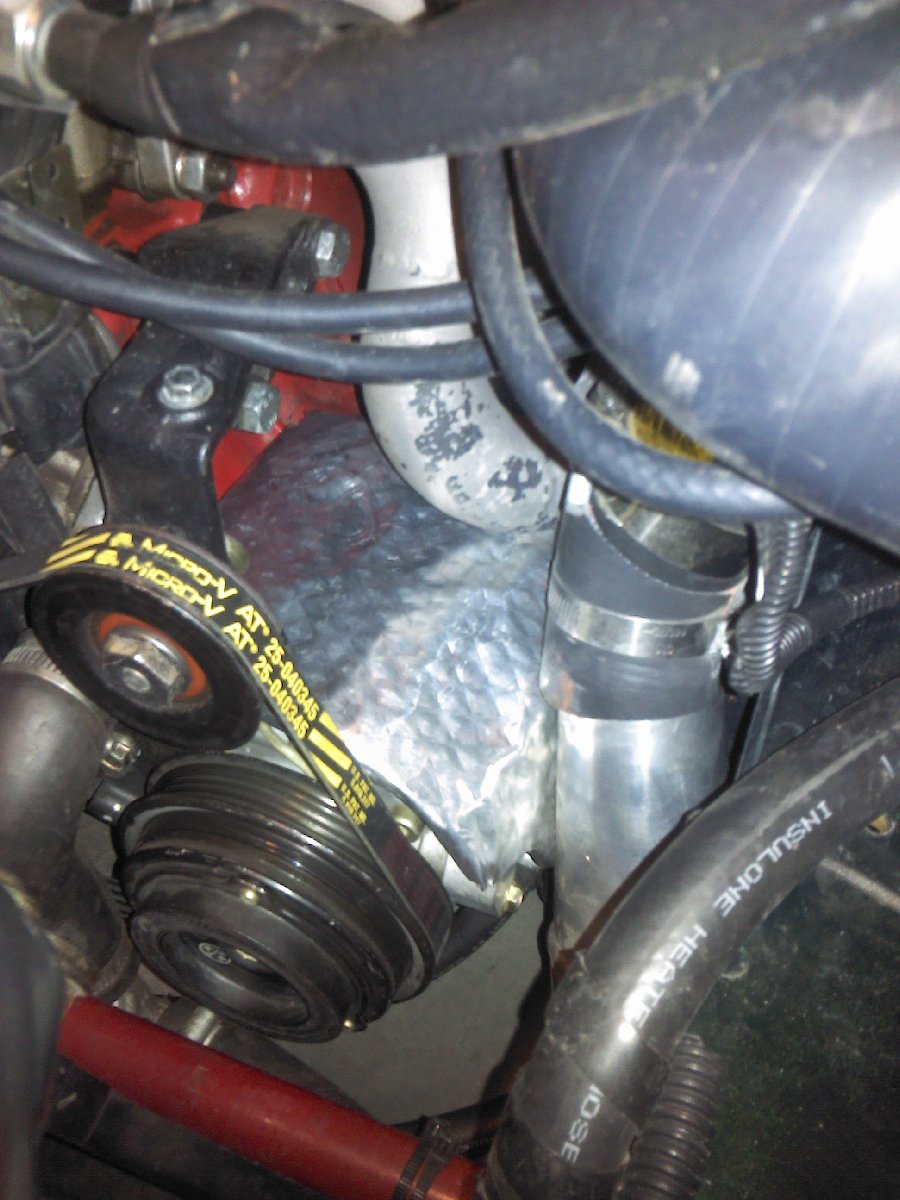 My last AC heatshield cracked, so I made another one from silicone wrapped in aluminum with fiberglass insulation.