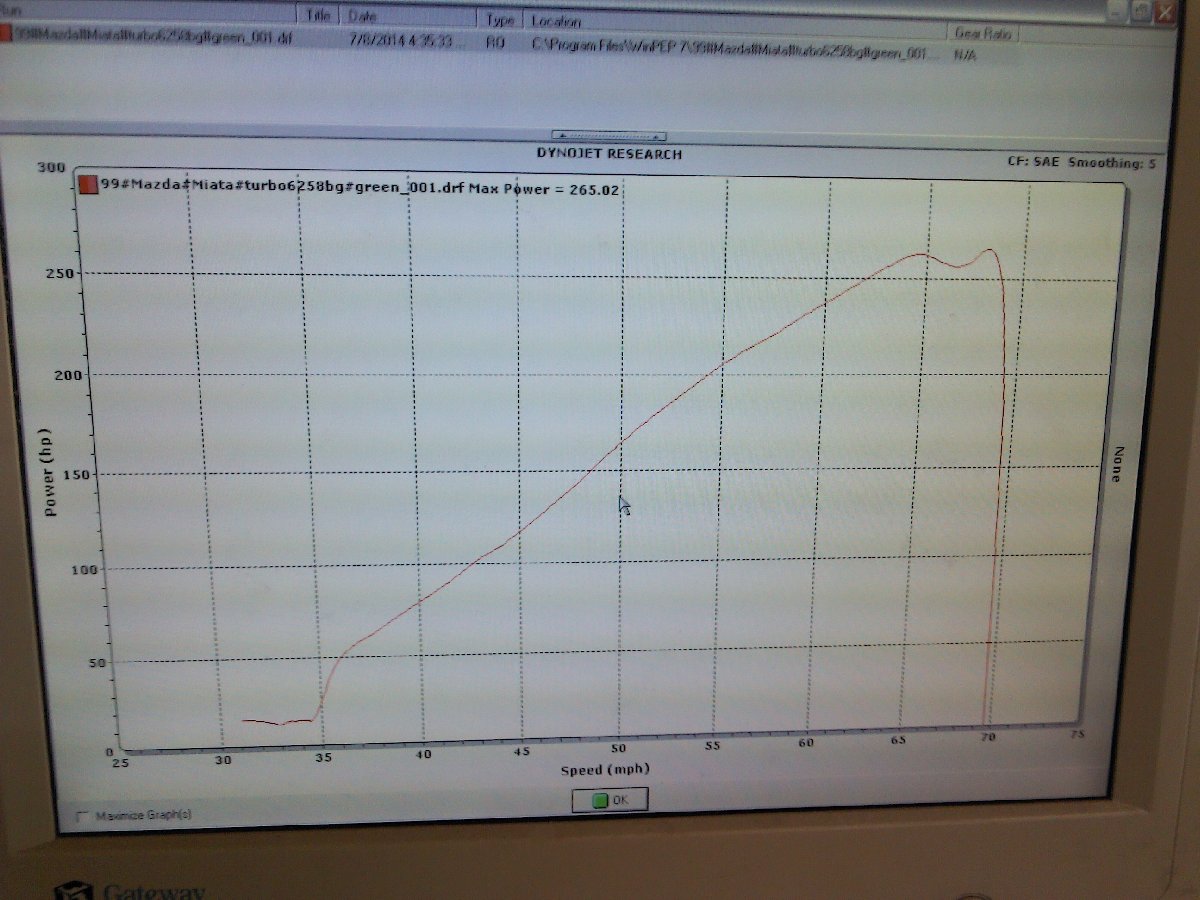 I tried to dyno the car on a Dynojet but the clutch slipped on the dyno, so I changed the clutch disk and swapped the transmission to a spare that I had that was newer. Here is how far I got before the clutch slipped. It slipped at 4K RPM.