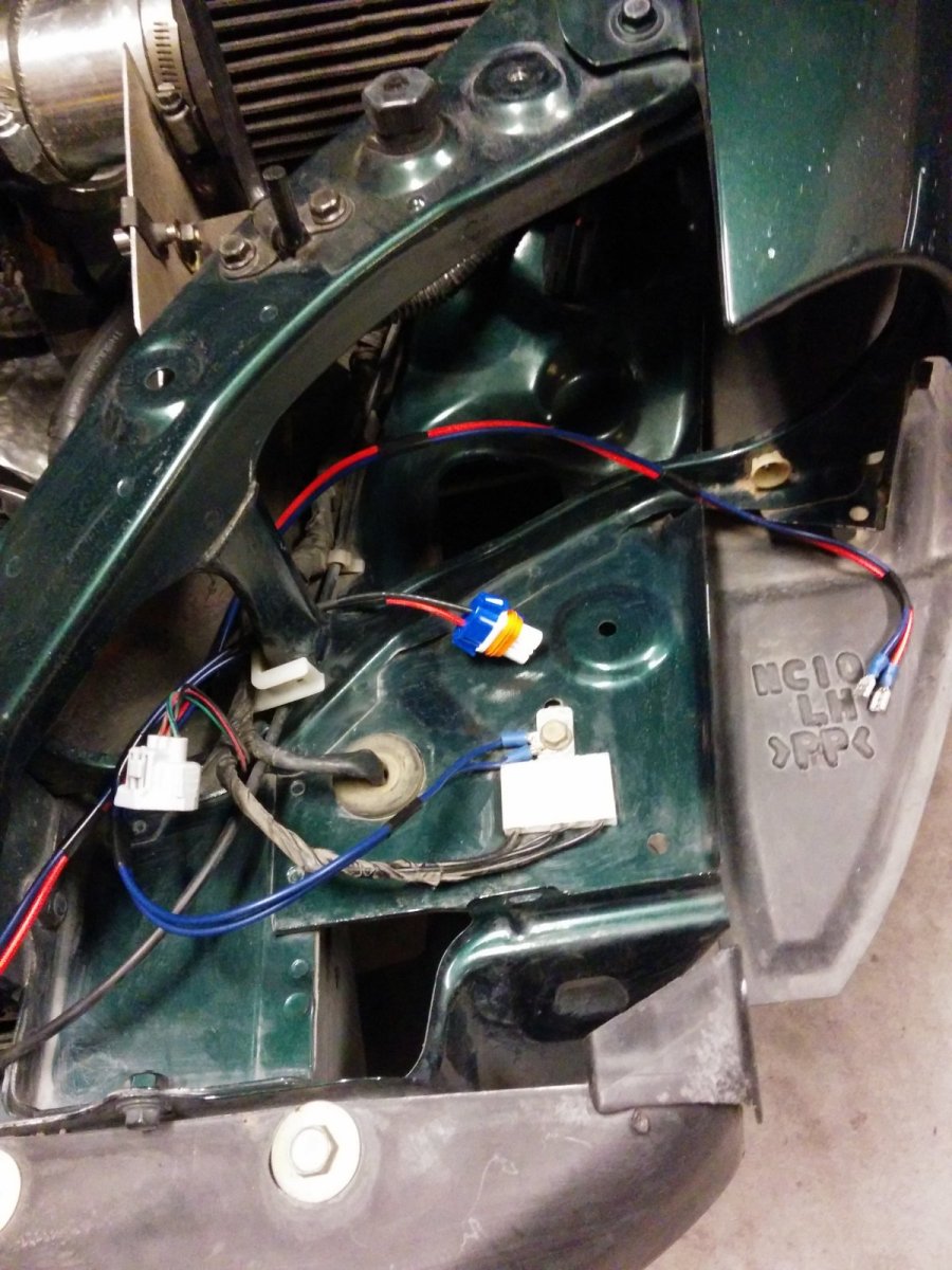 Thanks Gordon! I based my wiring on the Daniel Stern lighting page. They are really bright and have a low-resistance harness. All connections are crimped and soldered then covered with heat-shrink tubing.
