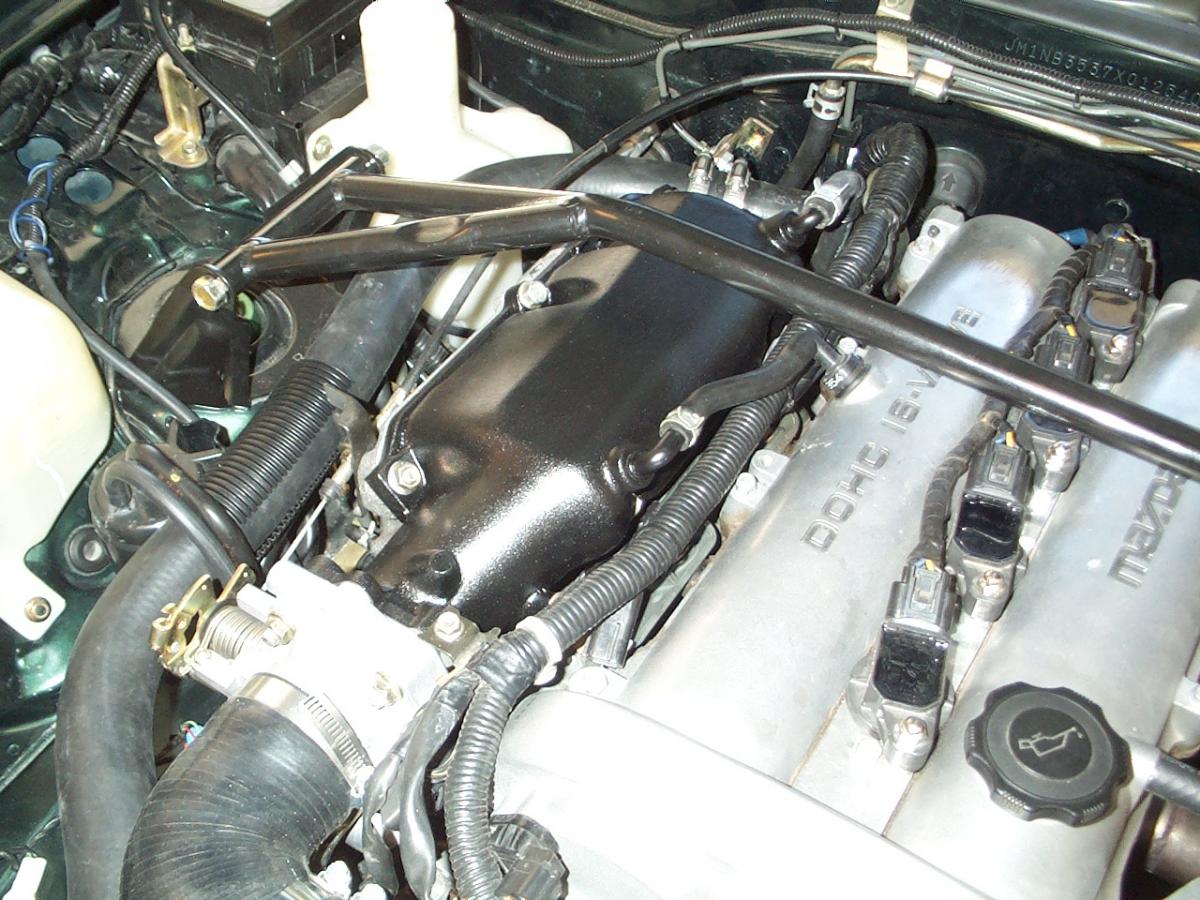 I also made a smaller intake support brace to replace the factory one. It makes oil changes easier.