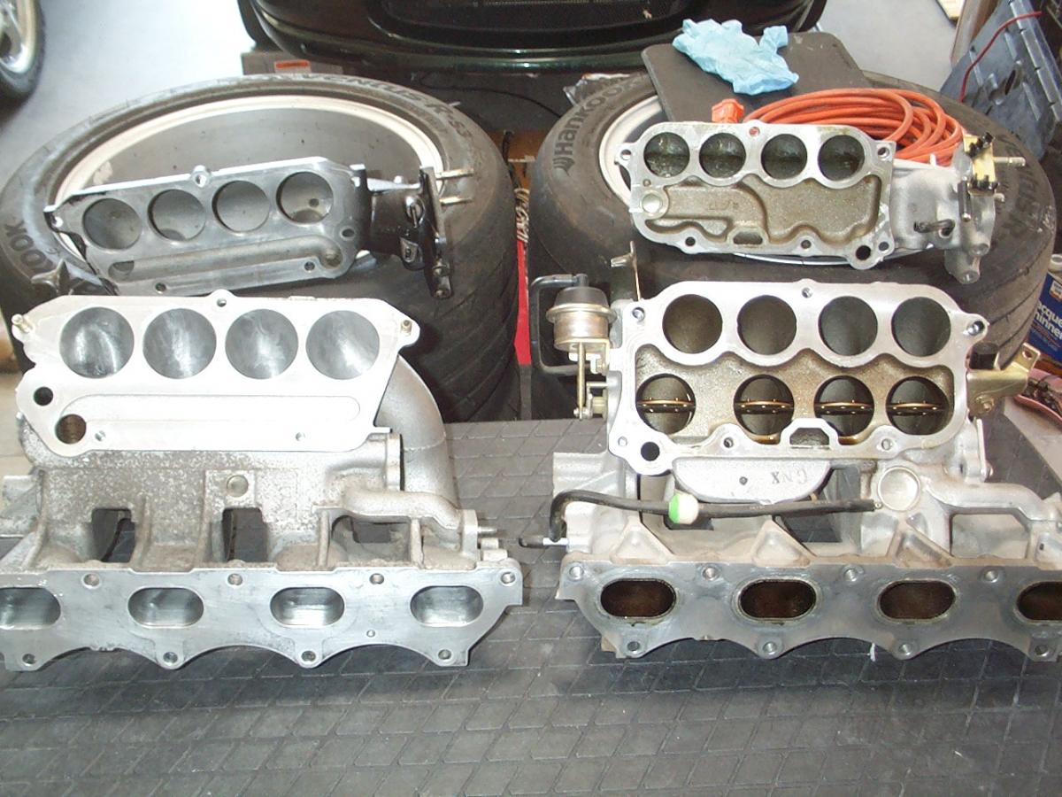 Squaretop intall. I smoothed the runners and neck. I also painted the top half black and made blocking plates to eliminate the EGR. I also took a pic to compare them.