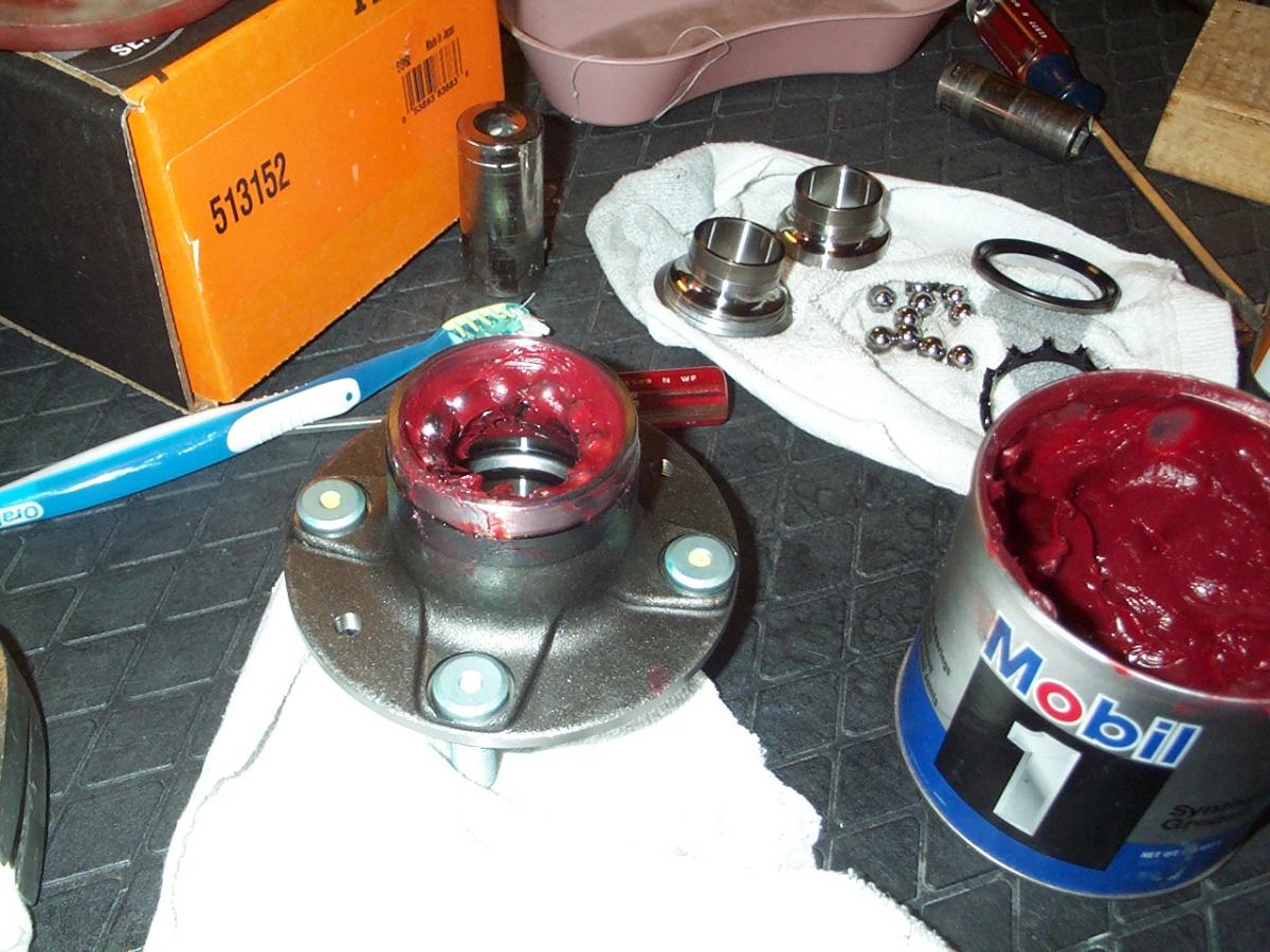 I bought new front hubs and repacked them with high temp grease. I practiced it by disassembling the old one first.