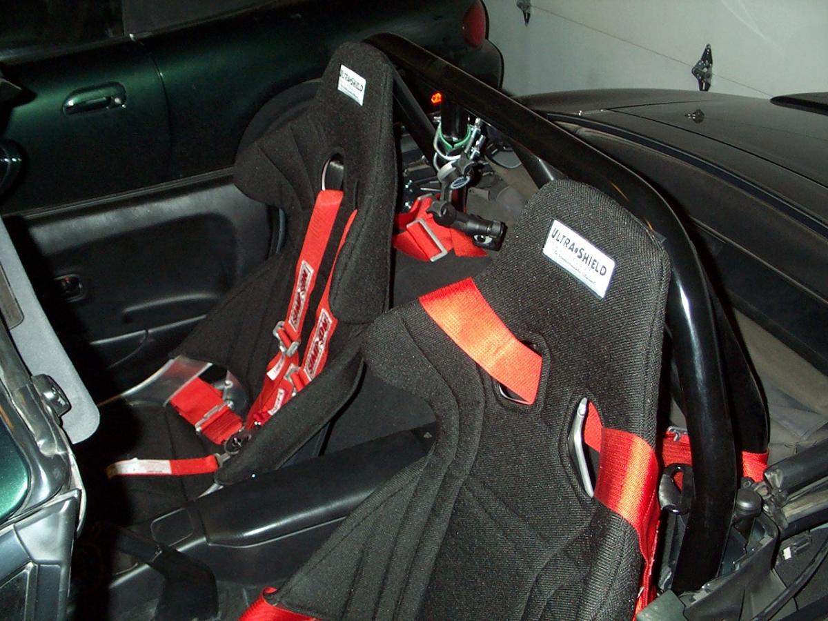 Ultrashield Rally Sport seats. I mounted them to the factory sliders with custom brackets. I also got Simpson 5 point camlock harnesses.