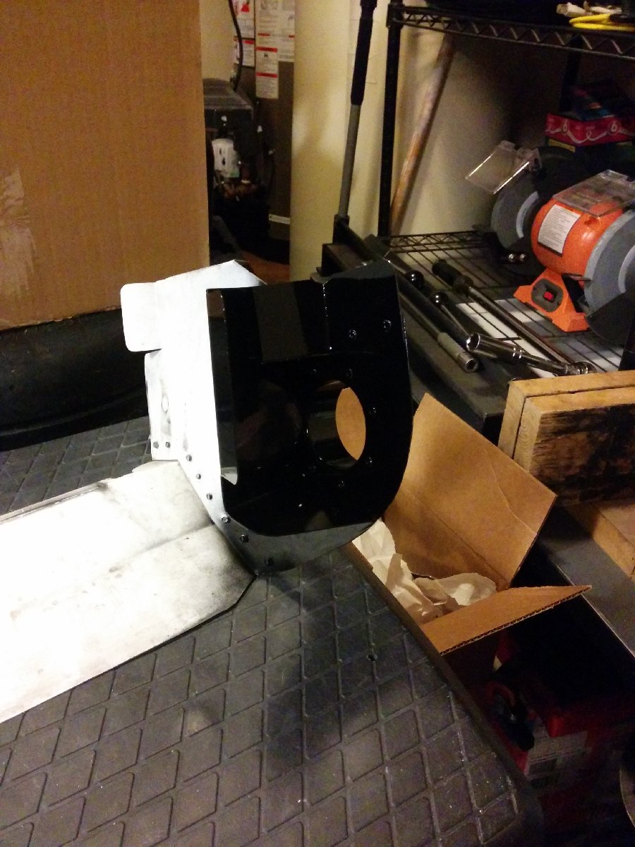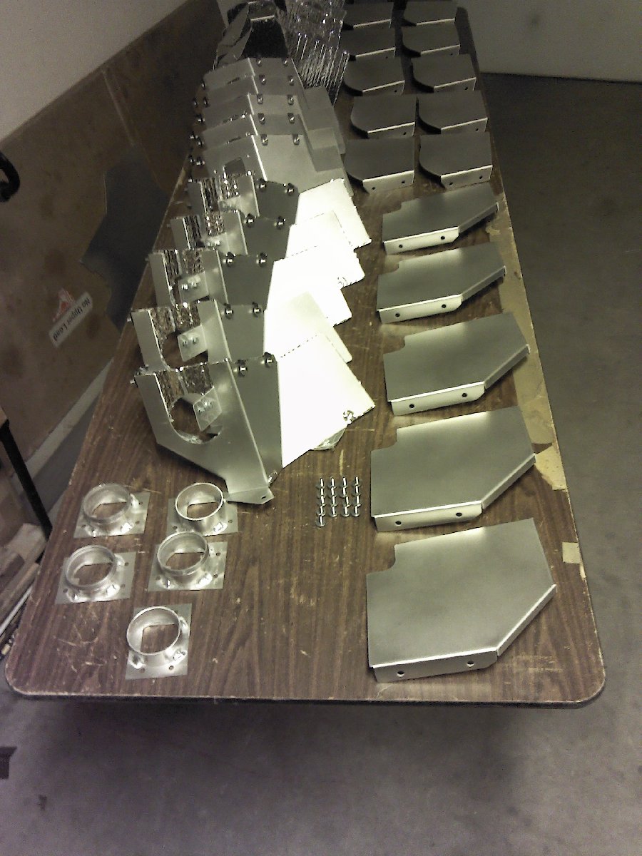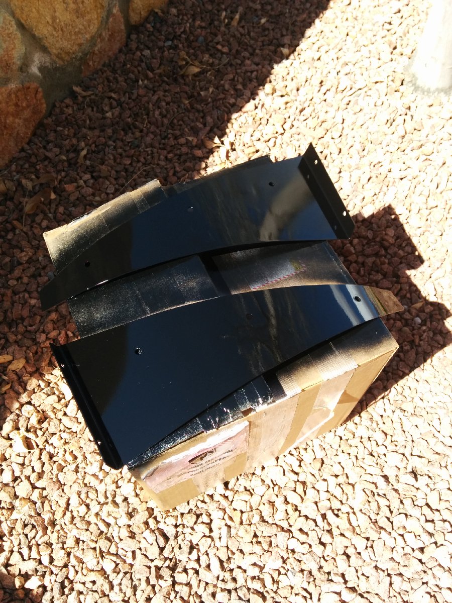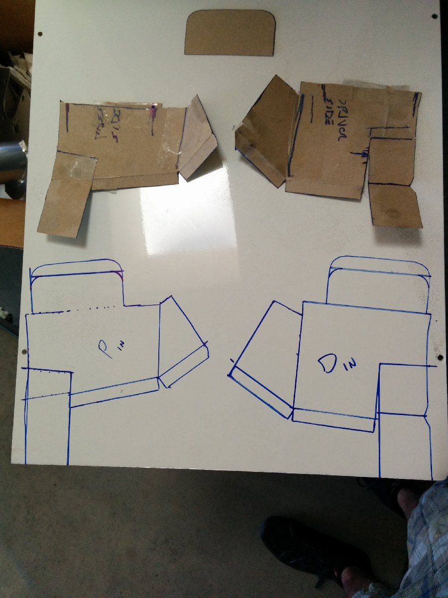 I bought flanges from AircraftSpruce and made air ducts in the mouth of the bumper. I integrated them into the intercooler ducting that I had previously made. I first made cardboard templates and then transferred them to aluminum sheet and then riveted them in and painted them black.
