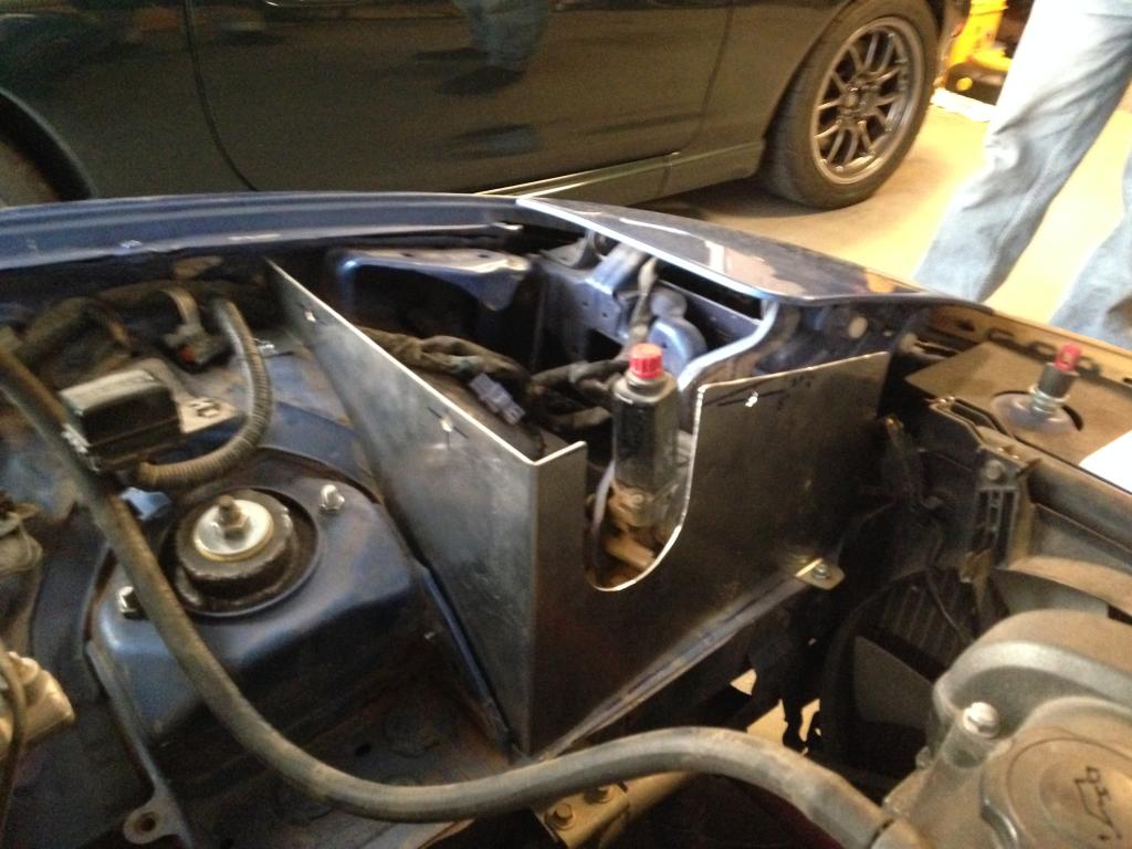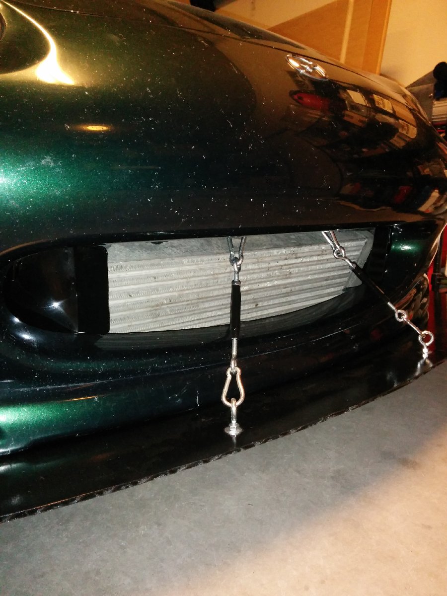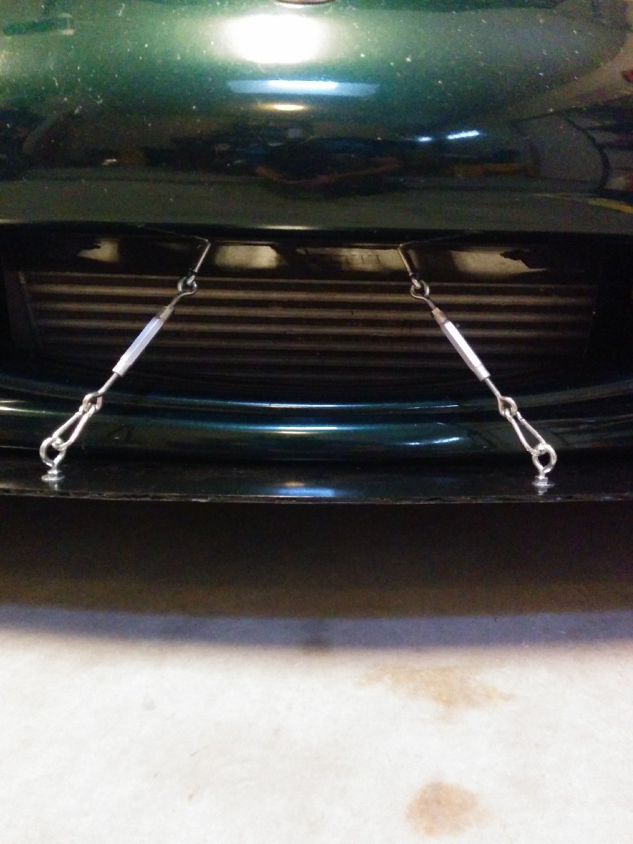 I realized that if the splitter is hit from below, it could potentially bend the rigid supports and hold the splitter in the bent position or break the supports and cause damage to the intercooler or radiator. I made new semi-rigid supports that will allow the splitter to return back to its original position if it receives an impact from below. I can also easily remove the supports.
