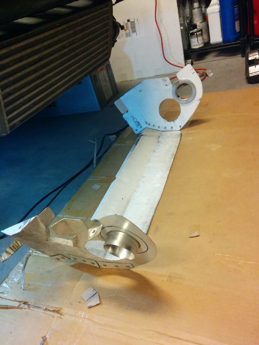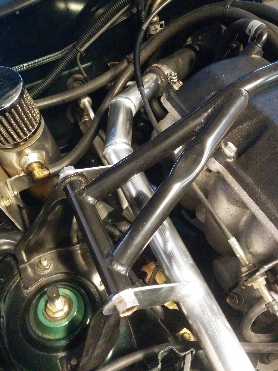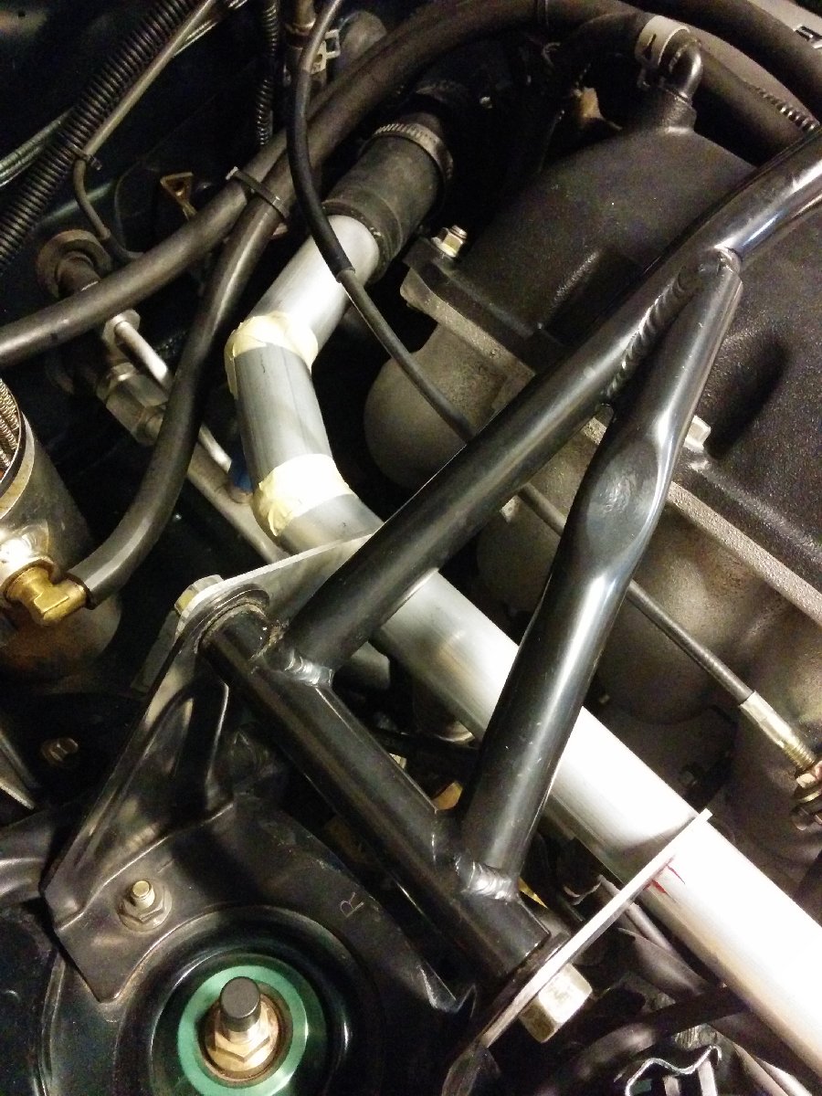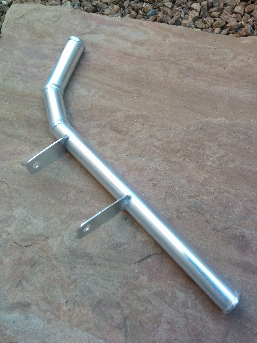 I always wanted to get rid of that long coolant hose, so I made a hard line to replace the GM truck hose. I bought schedule 40 aluminum tube and cut the pieces and taped them together to fit. I also made some cardboard pieces to make patterns for the mounts. I went to the local Autozone to get hose to to fit.