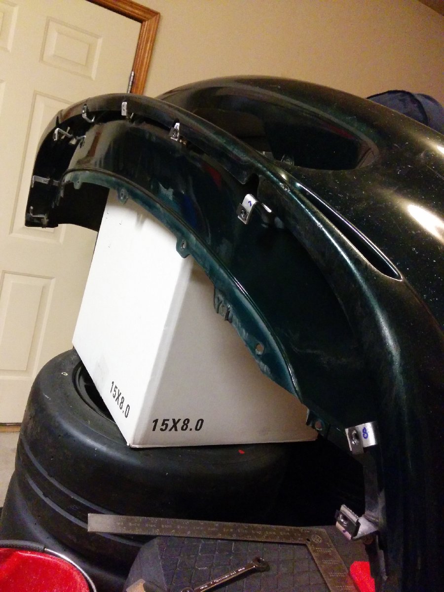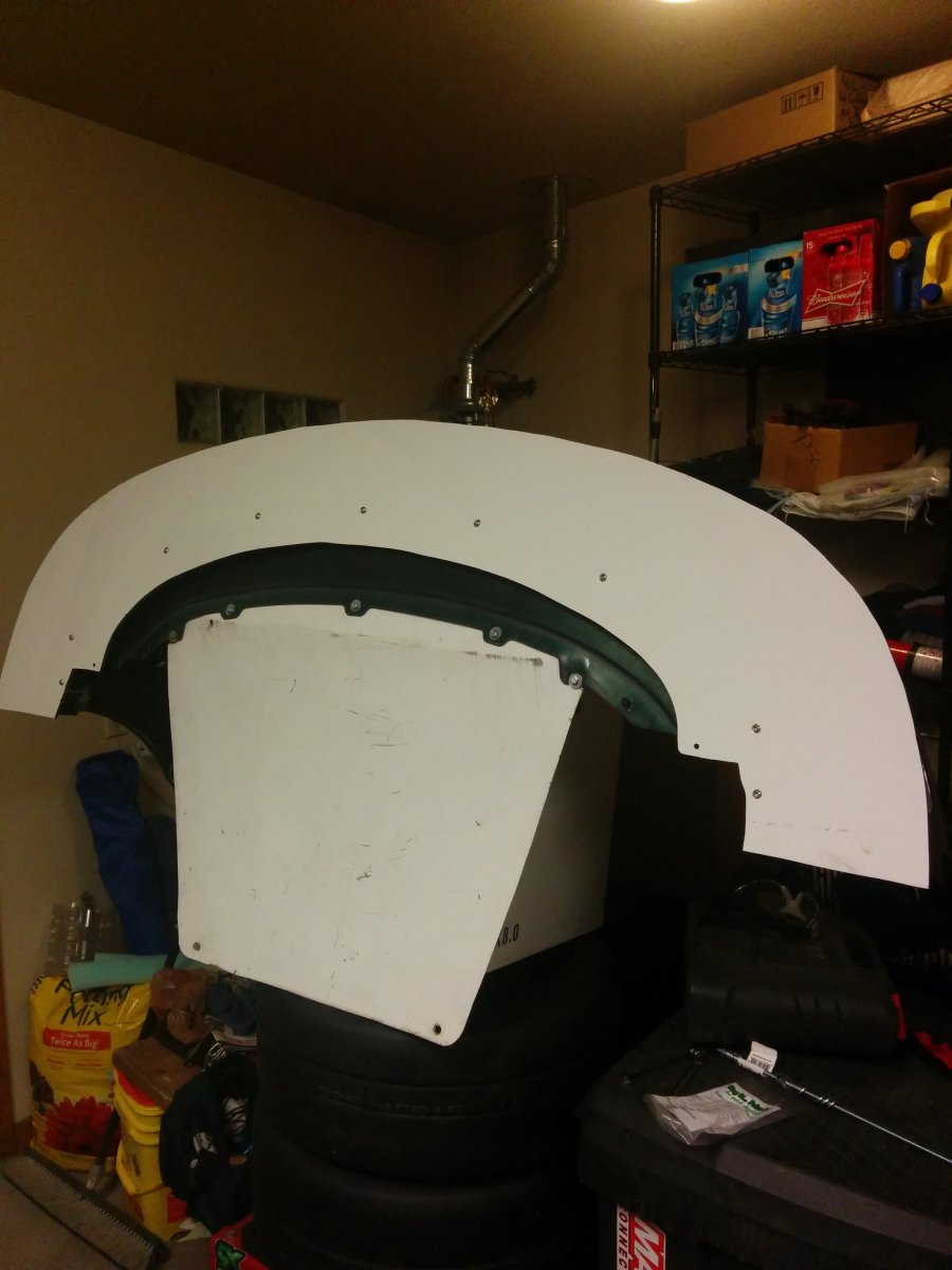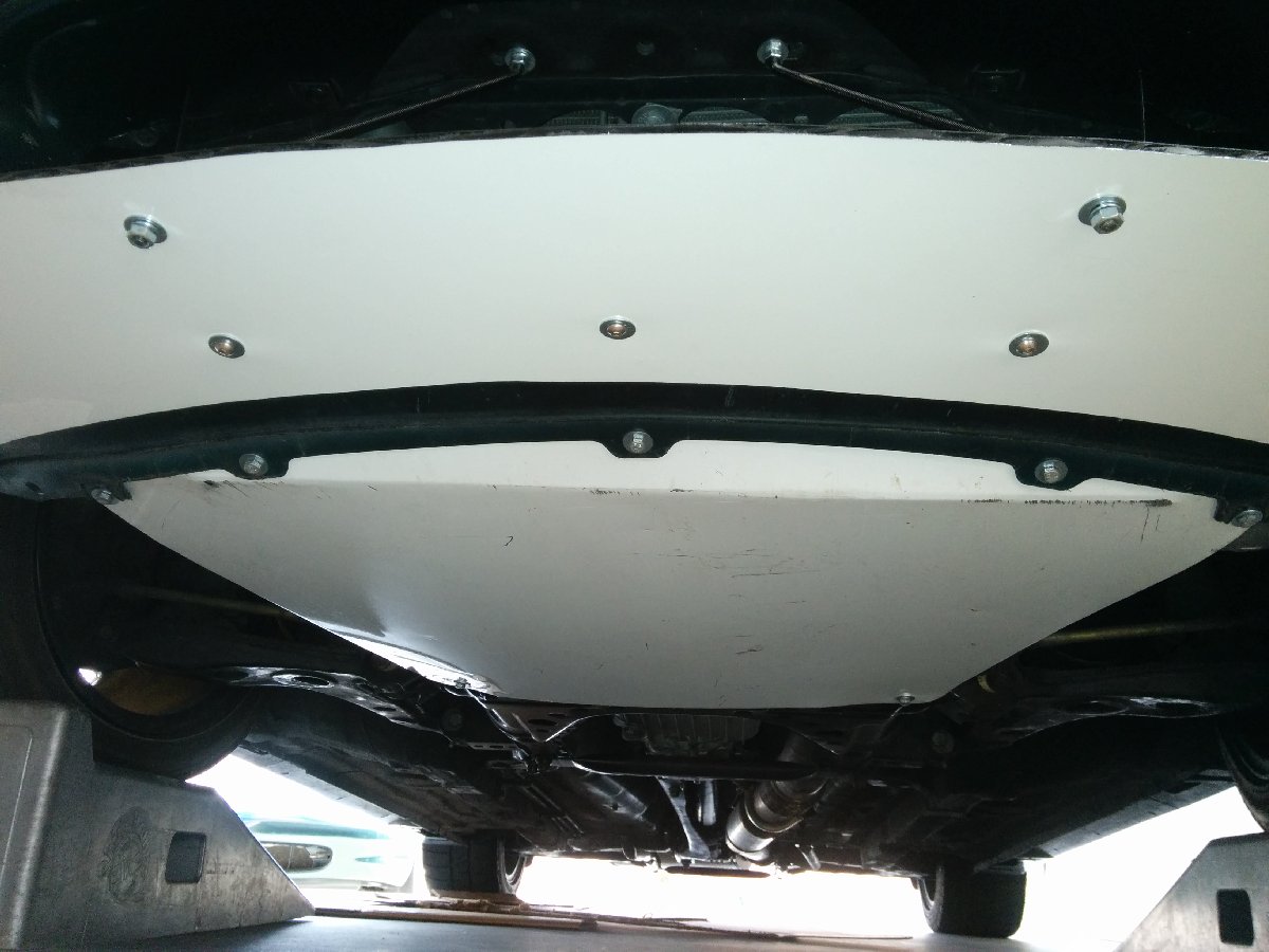 With the bumper air intakes made, I decided to continue with the front bumper splitter while I had the bumper cover off of the car. I bought a sheet of Alumalite to make the splitter. I made brackets to attach it to the bumper cover. I used u-nuts on the brackets for the bolts.