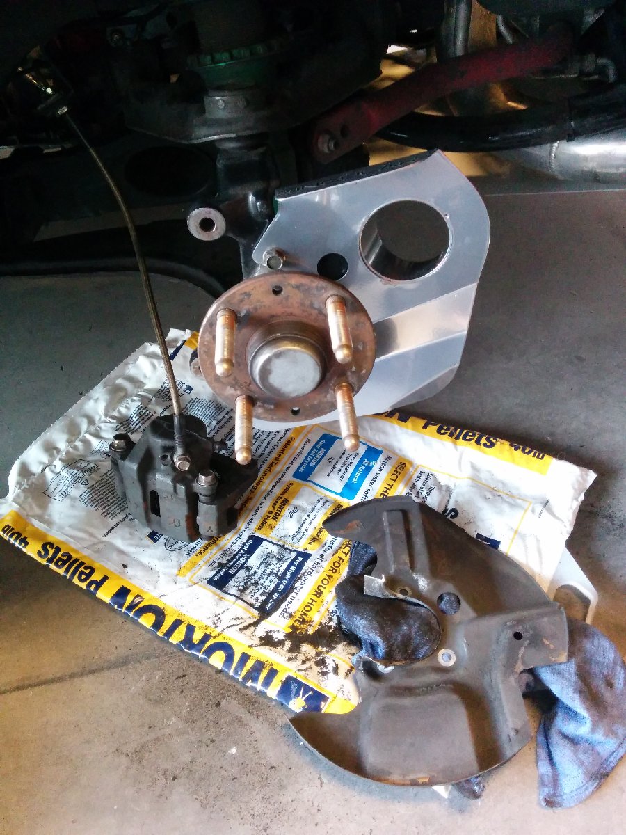 Last night I finally got to do the brakes. The Hawk pads are worse than the Carbotech pads. I had to re-drill and grind the holes to get them to line up and notch the top edge to make room for the pin.