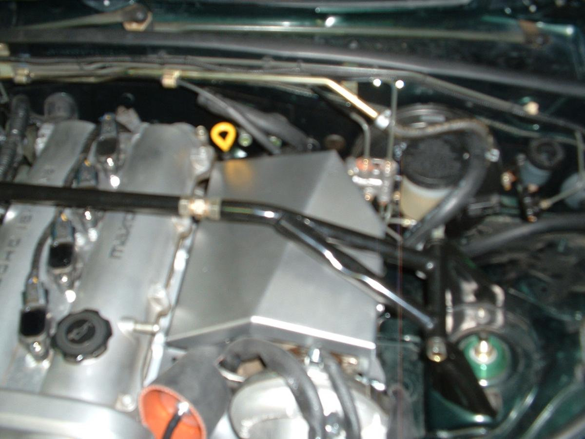 Today I finished the fabrication and install work in the engine bay. The only thing left to do in the engine bay is the breather hose and the heater line shutoff valve.