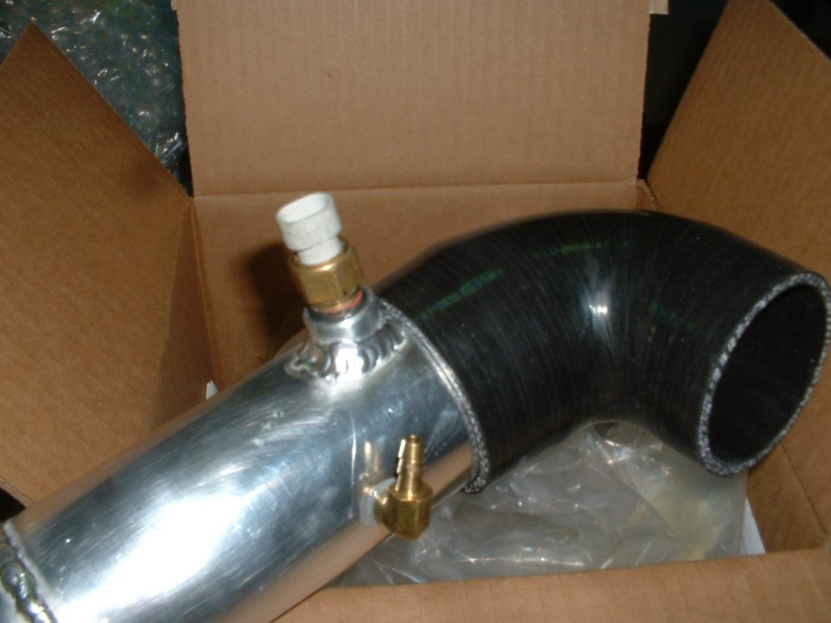 The intake charge pipe is completed with the IAT sensor bung and wastegate hose barb.