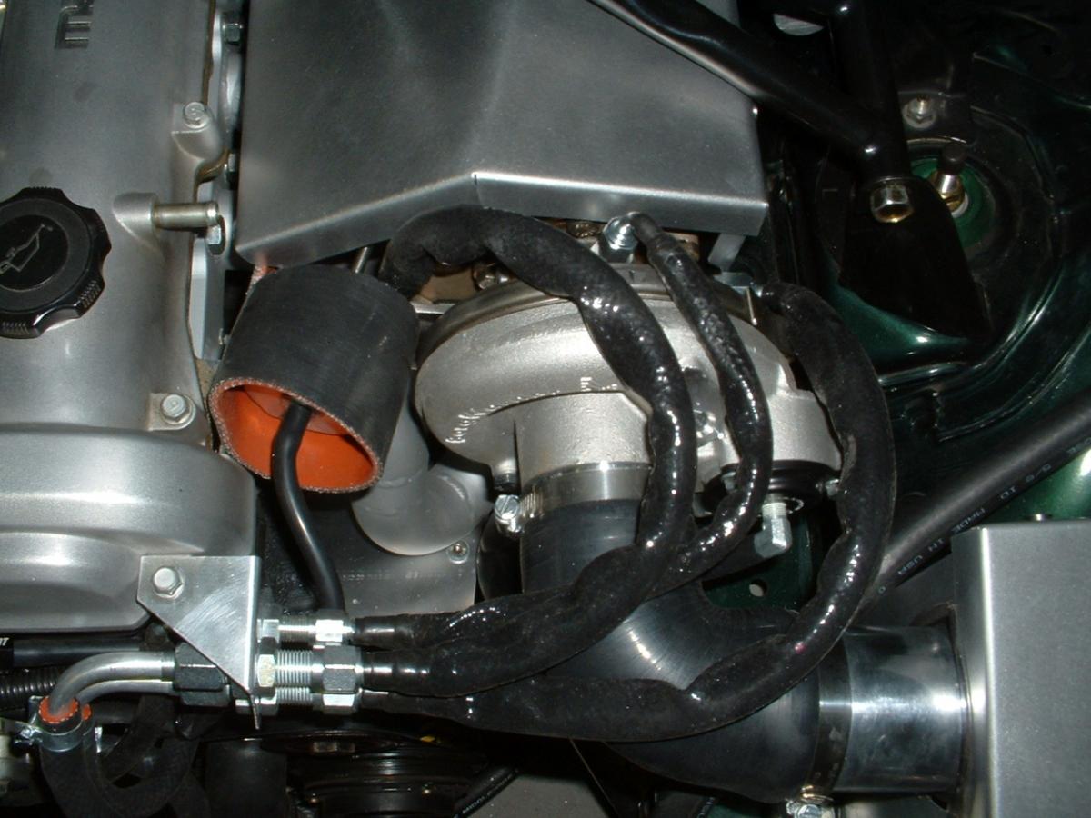 I took it out for a spin and it really pulls. The boost is virtually instantaneous. First gear is gone in a flash. I have to install the oil catch can breather, heat shield for turbine/DP and install the intake temp sensor bung.
