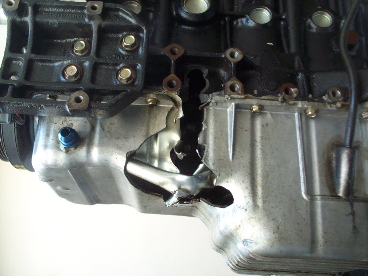 I just finished pulling the engine today. No 2 rod is gone! It broke near the top and snapped up to the underside of the piston and cracked it and it stuck at the top of the cylinder. The rest of the rod swung around and punched a hole in the cylinder and the driver side of the block and the oil pan. It also made a dent in the sub-frame cross member.
