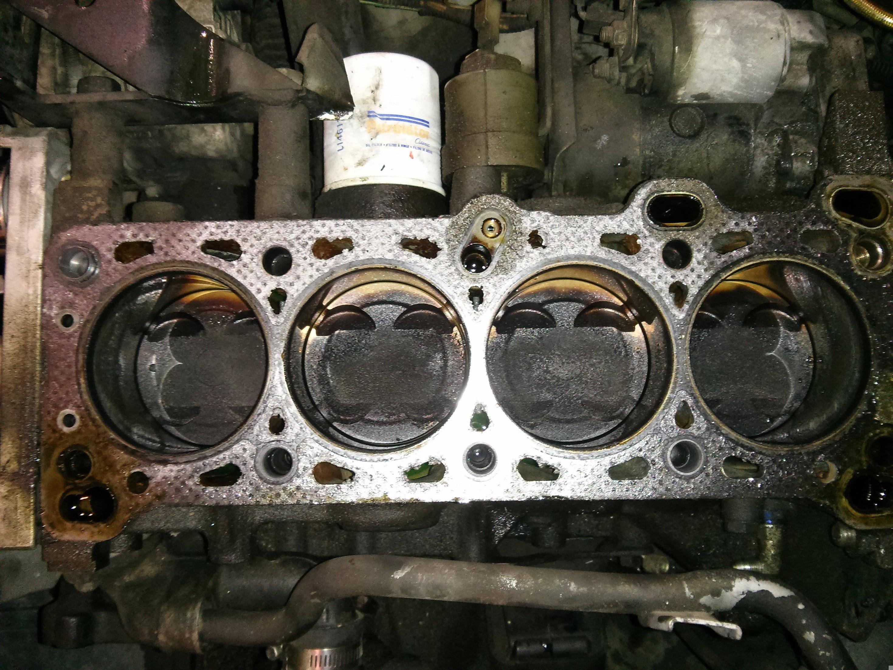 Well change something on PCV, dammmmnnnnn those pistons are nasty!!!! Are you going to clean the tops off? I would highly recommend it... Also you got a leaking intake valve in your pic, third from left.