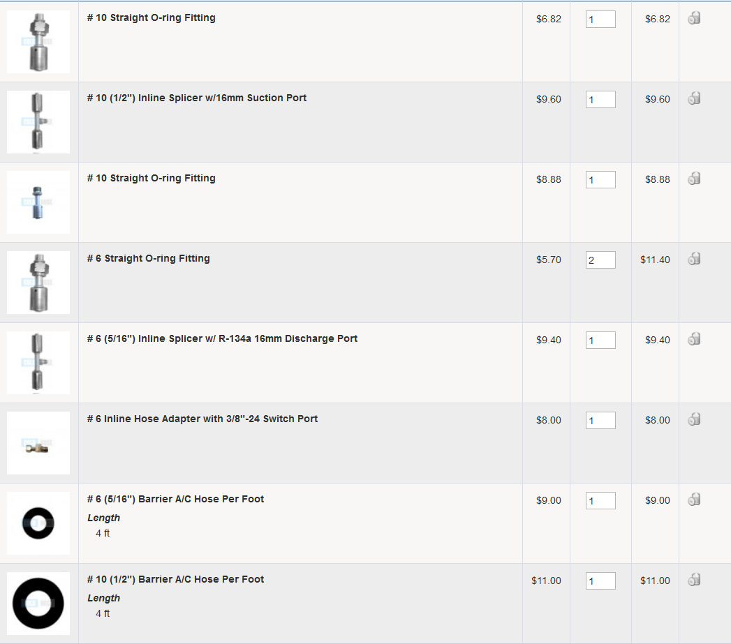 I still need other parts, a condenser, dryer, the little dryer stub hardline, a compressor and bracket. I think I'm gonna try buying most of this stuff used. All in all, I think I'll be spending around $300 bucks. I have a vac pump and set of gauges to charge it myself.
