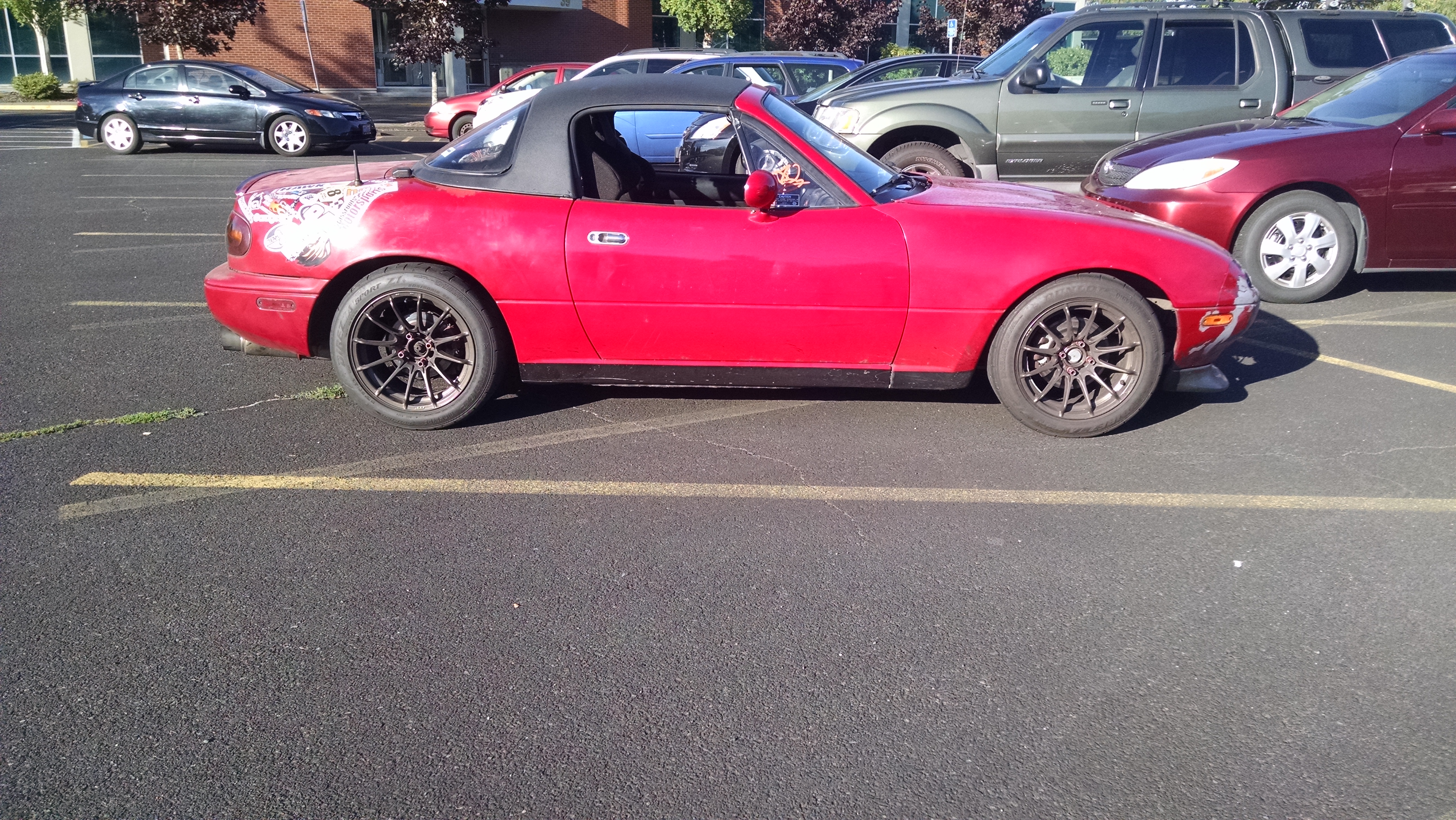 Wouldn't nice narrow wheels be primo in the snow, though? I want to strap up the thinnest, cheapest winter steely set I can find up at LKQ. I wonder what chance in hell I have fitting a FWD offset steel 15 over wilwoods?