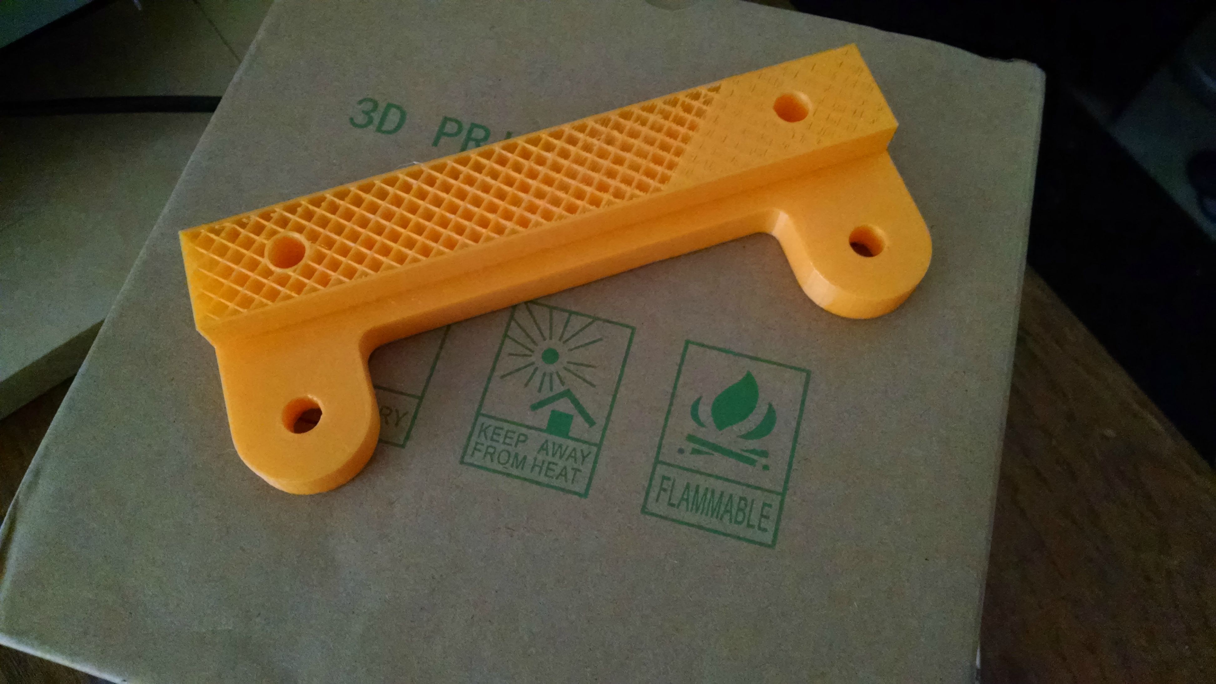 It's getting better, better enough to maybe print brackets tonight. I scaled the test model down 50% and turned the extruder up to 150% fill. The two shell layers and infill passes are still having adhesion problems, if it would extrude twice as thick it would be flawless.