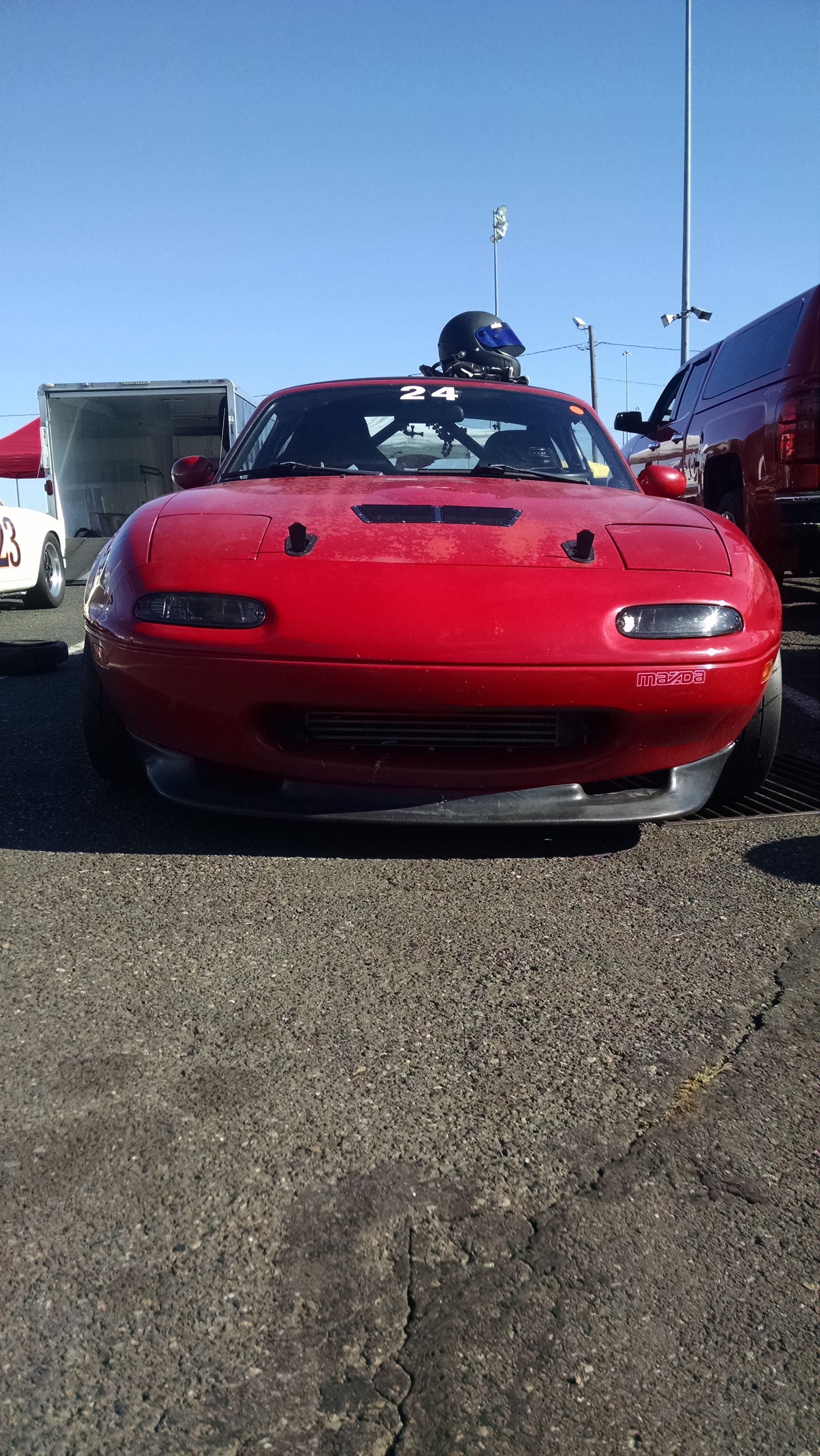</p><p>Yep, ran out of gas.</p><p>Otherwise the track day was great. New ride height and alignment did wonders on the handling. Was a lot more neutral, still a bit of push on some corners that I didn't really like, probably just need more front camber.</p><p>3 awesome sessions, 1 shitty one. Last session of the day I took hailey out. She was bored as hell (of course <img alt="" src="https://www.miataturbo.net/images/smilies/smile.gif" title="" /> ) and I was having fun trying not to scare her. About halfway down the front straight I passed someone and saw an M5 approaching, I was pretty much at the end of the passing zone (maybe 25 yards) and he was an easy 100yds back. Thought nothing of it, until I checked my mirror right before the braking zone. He had flown up almost next to me, I watched him go into my blind spot on the right side (inside of the first corner) and basically freaked out, I thought he was going to cut in on the inside. Slammed on the brakes and went straight through the chicane. Any corner with a wall could have been bad. Might have flat spotted a tire. Had to go in because I was so angry and didn't want to be driving like that, luckily i only missed a lap.</p><p>Went over to approach the driver and he said "why didnt you let me by? I was faster than you" I started fuming and told him I didn't feel comfortable with the space left in the passing zone, started yelling, he then tried to deny it was him and then drove away. I reported him to the management, but doubt anything will come of it.</p><p>Otherwise, awesome day, car ran great.</p><p>@greddygalant you can take mine out for a lap when I can take laz out for a lap <img alt="" src="https://www.miataturbo.net/images/smilies/smile.gif" title="" /></p>