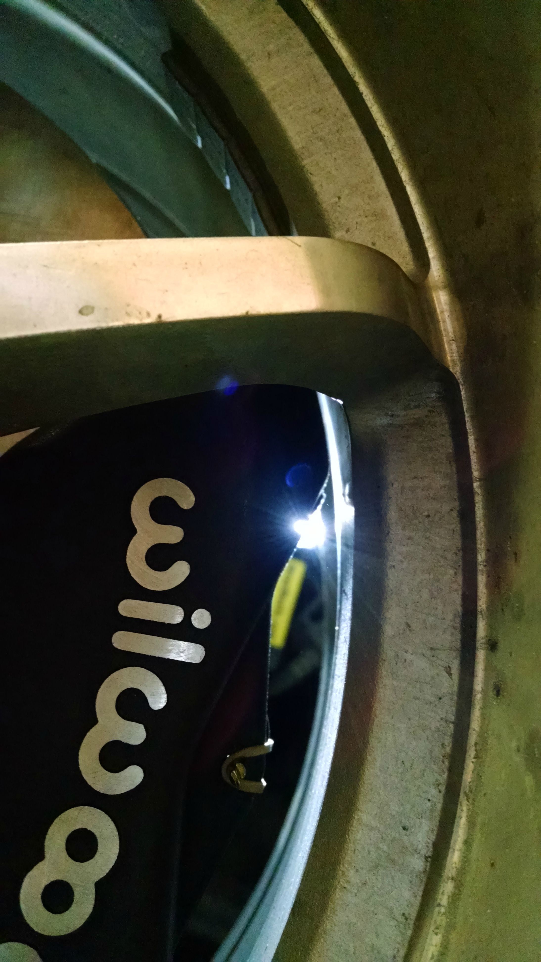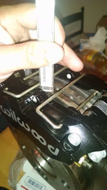 <p>Ok brake stuff. Just got my pads in. And measured how far the caliper needs to move up.</p><p>With the caliper sitting on the rotor, there is .1" from the top of the pad to the top of the rotor. But the top of the rotor has a slight taper to it, so where exactly do I want the top of the pad to be? All my other rotors get a little ring around the top where the pad was just below the outer surface.</p><p>If so then the caliper should just move like .05" up the rotor and I should have .2" of clearance to my wheel.</p><p>Deezums. When you get your BP-10s installed in the caliper, set the caliper on the rotor, and see how much you have to move the caliper up off the rotor to get the pad flush, or just take this measurement:</p><p>