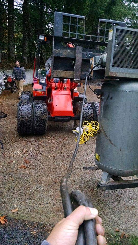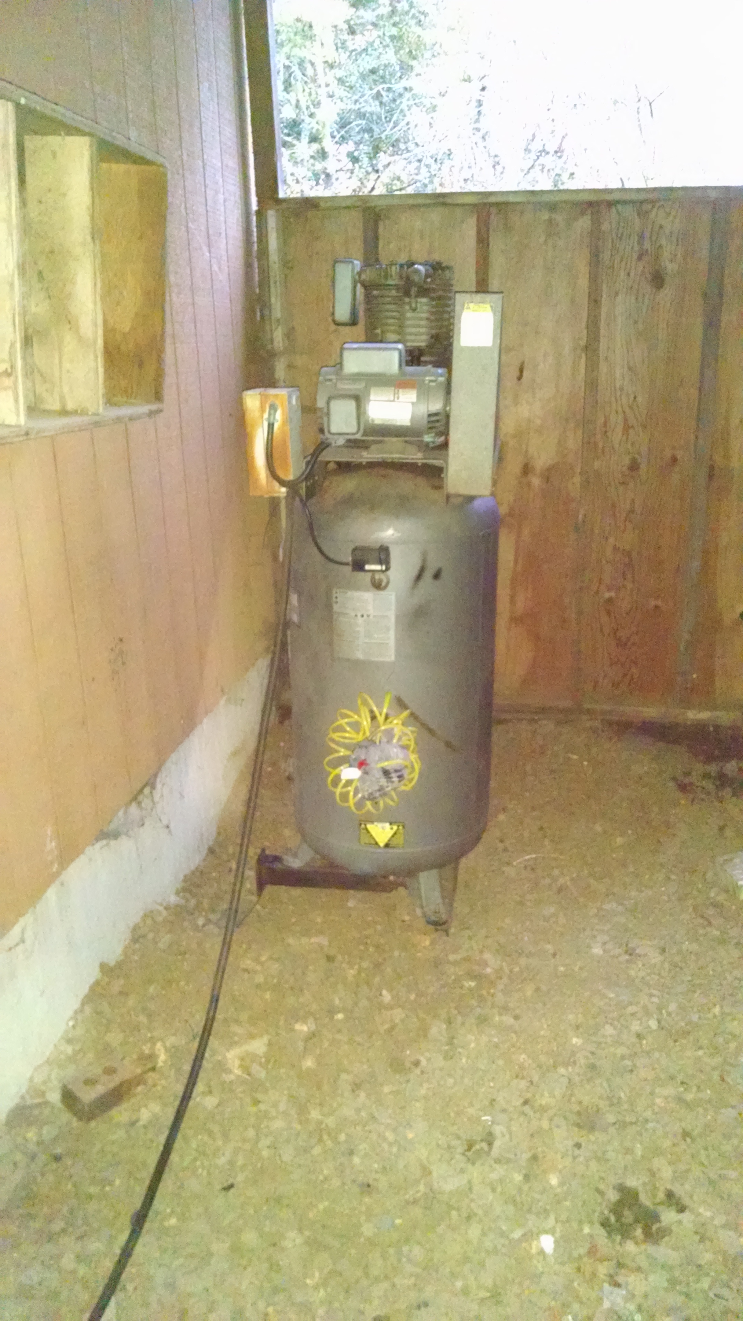 Landlord moved my air compressor to the side of the house and we drilled a hole in the wall for the hose. The air compressor is now a small rumble when it turns on.