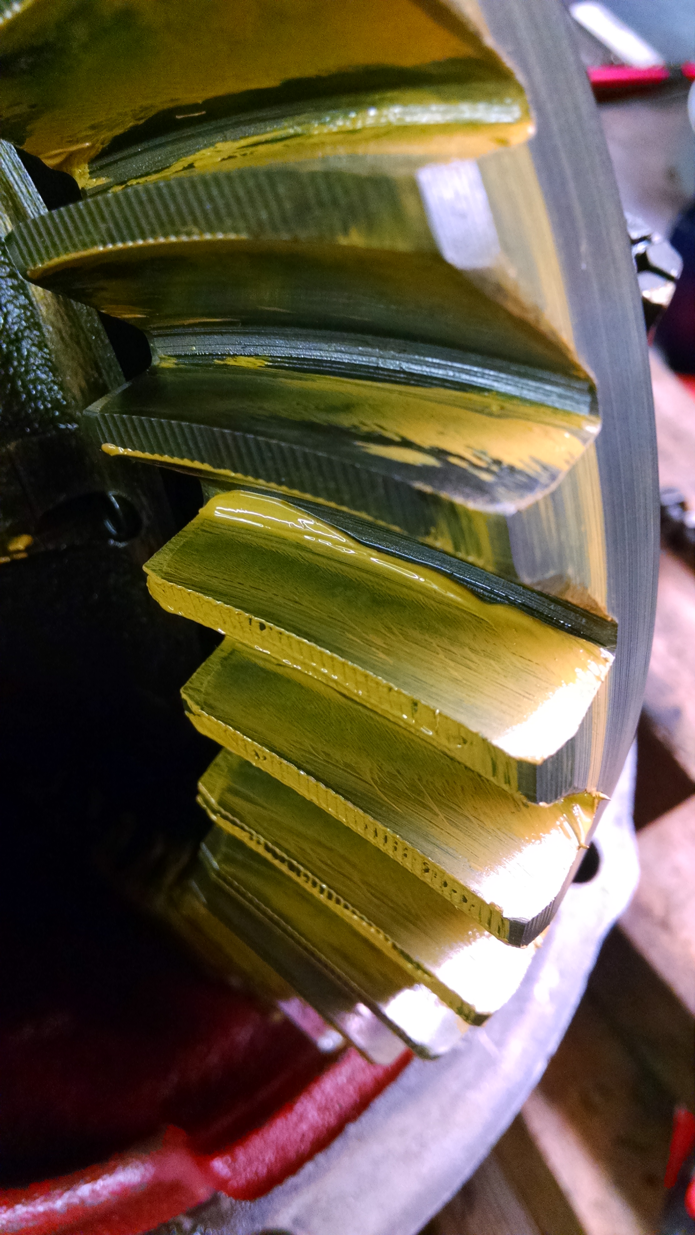 Crush sleeve is easy. With shims every time you change the pinion depth shims you have to reset the preload shims. According to that pic it looks like the pinion needs to moved out/away from the diff(smaller pinion shim) and the diff might need to be a hair closer to the pinion (move a shim from one side of the diff to the other).