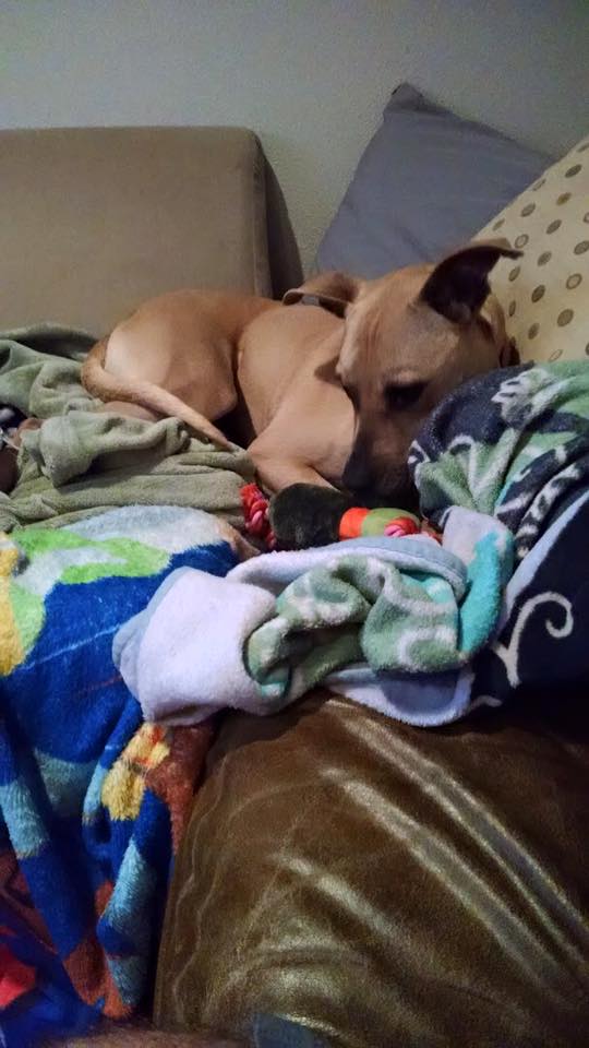 She's awesome. Literally the best dog we could have gotten. She is also the laziest animal I have ever met. She is very loving, and likes to cuddle, and for the most part sleeps all night.