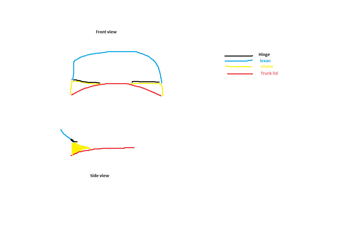 I think the lexan spoiler is split into three pieces, cut on an intersection curve with the top of the deck lid, up off on an angle to clear the height of the trunk hump. I really don't like how the front screws hold that thing down, but it does mean the lexan is flat the whole length of the hinge.