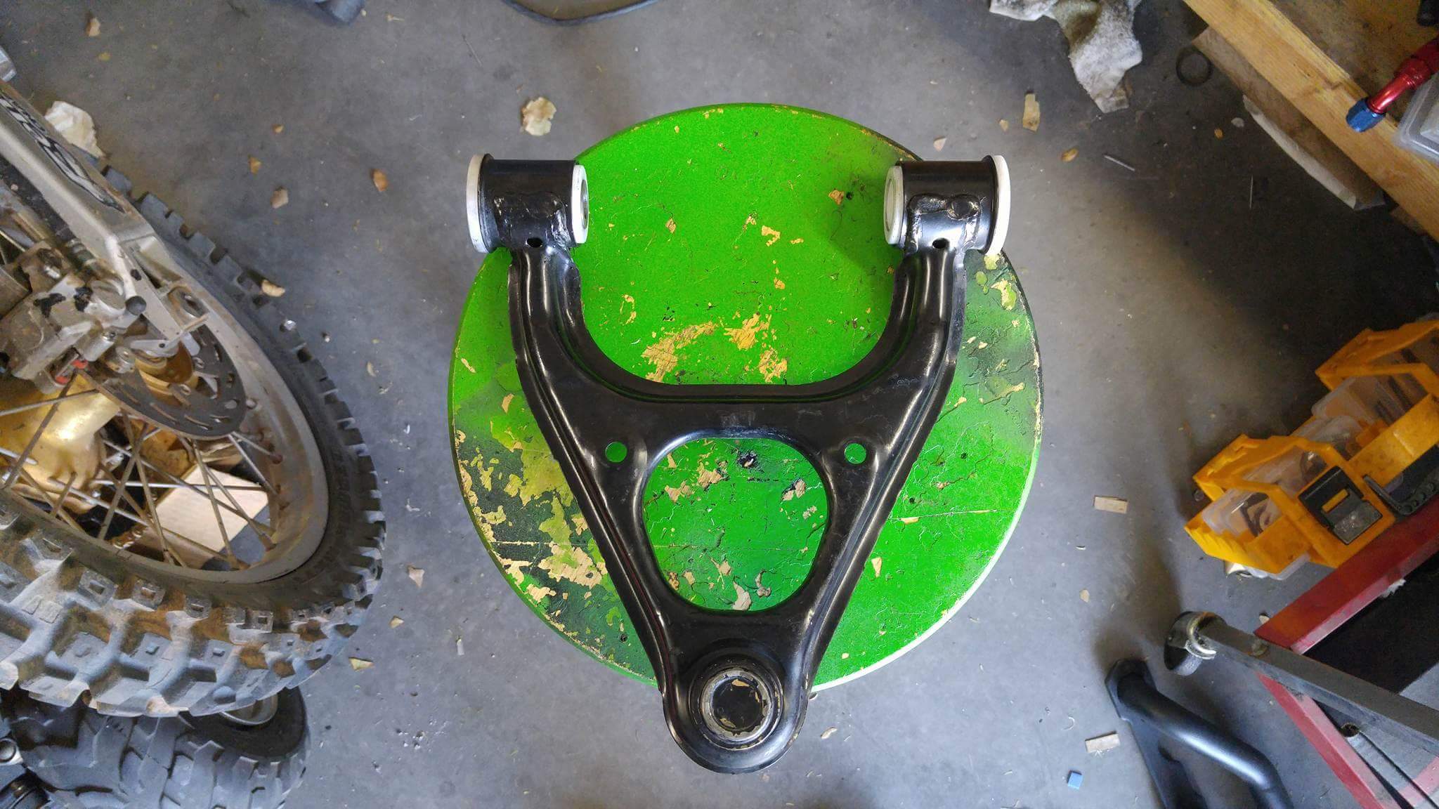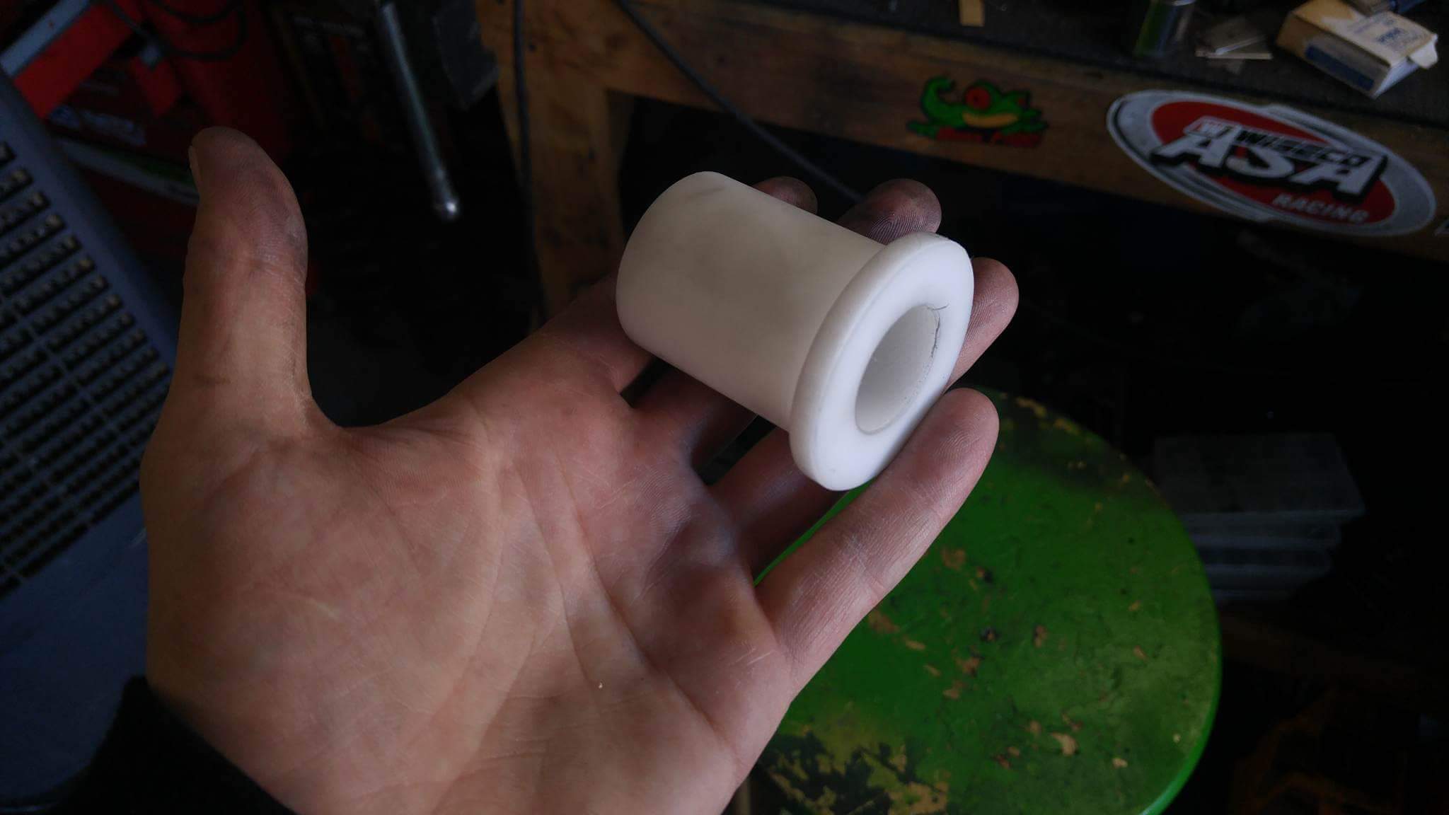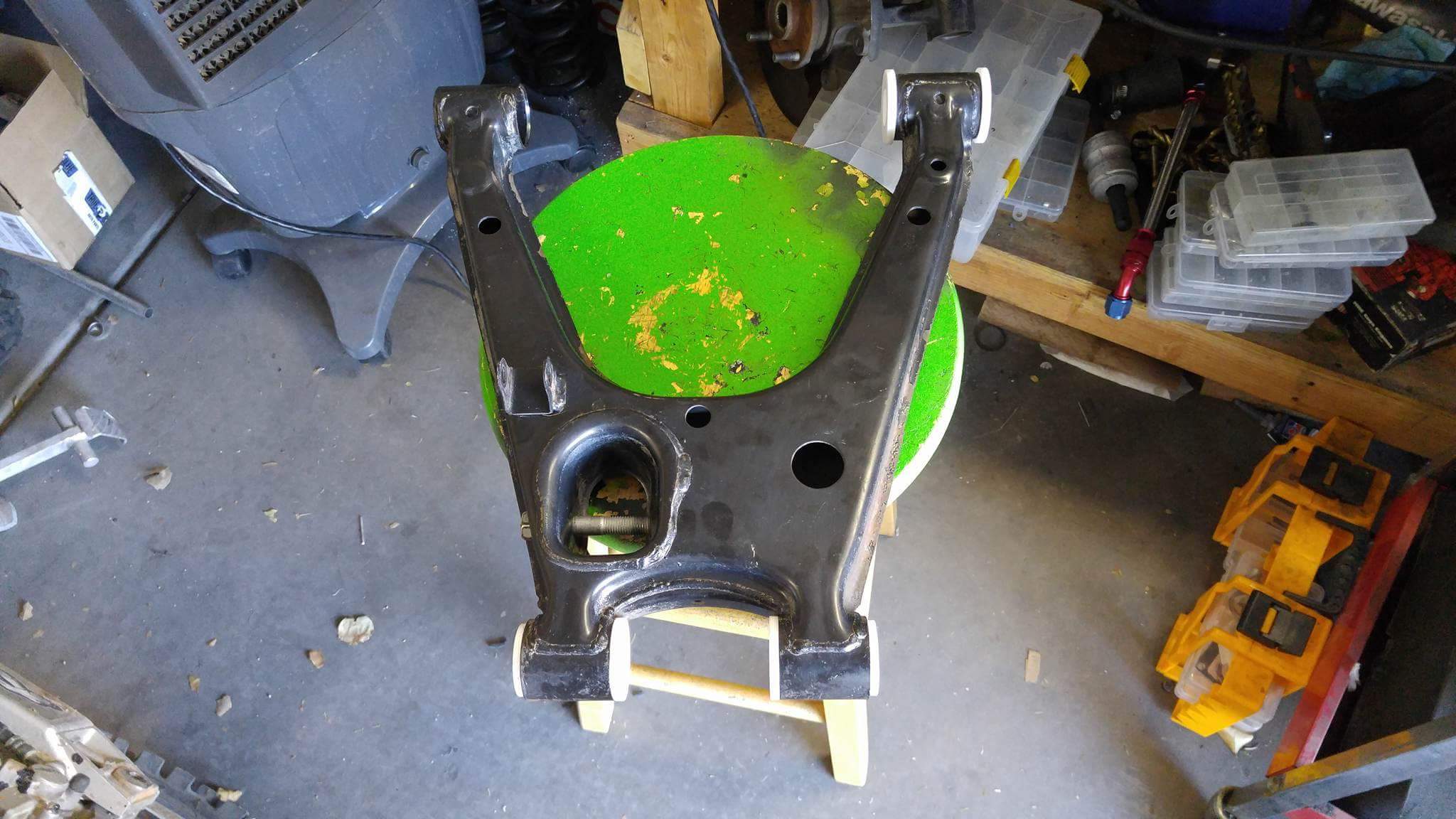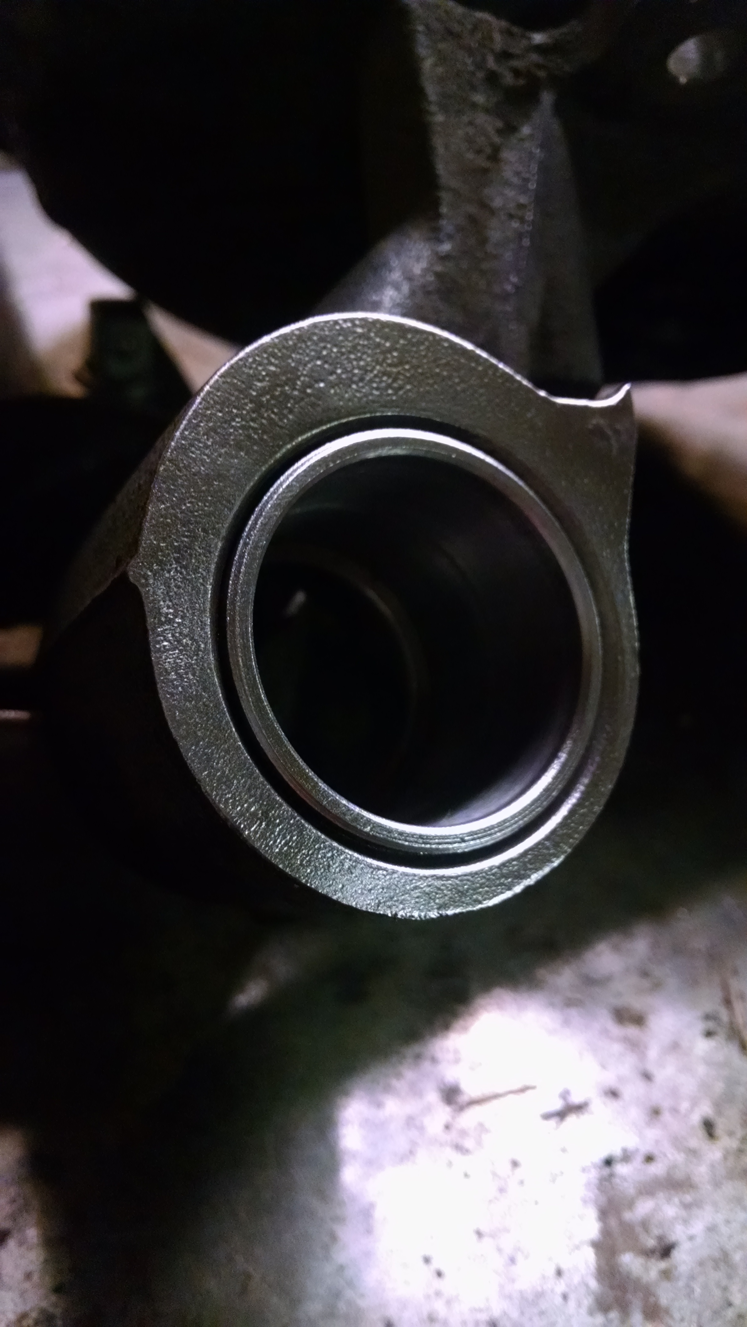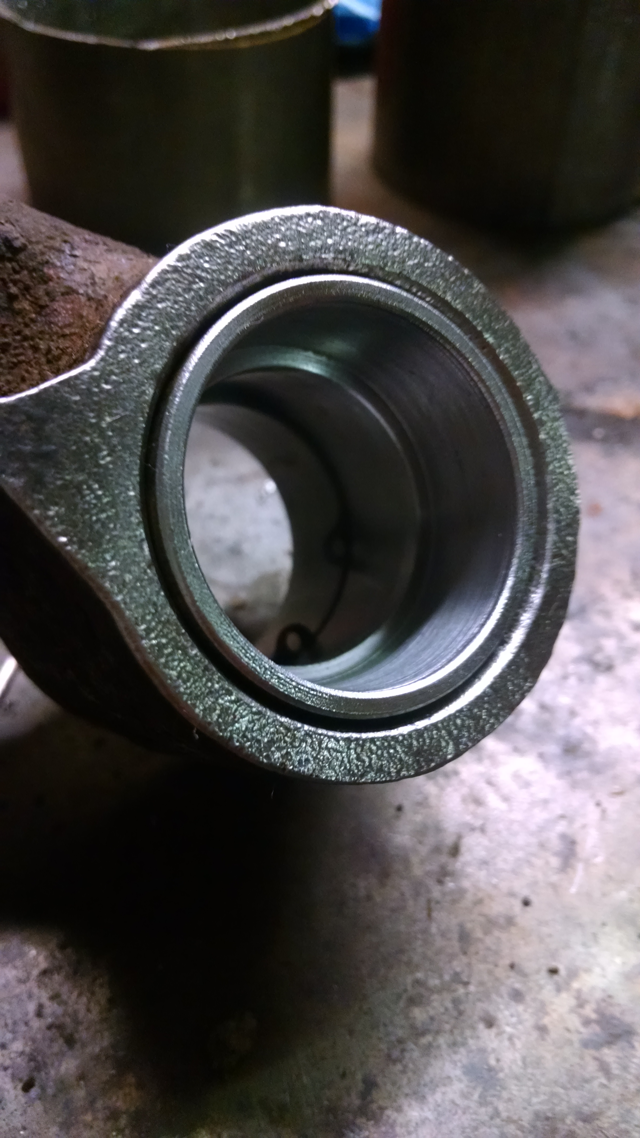 First step in the bushing replacement. Pressing out old bushing in the ABS spindles, and welding in the spherical sleeves. These will get powdercoated before they go on. **** midwest salt, this **** is ridiculous. I had to grind so much metal off just to get clean metal to weld to.