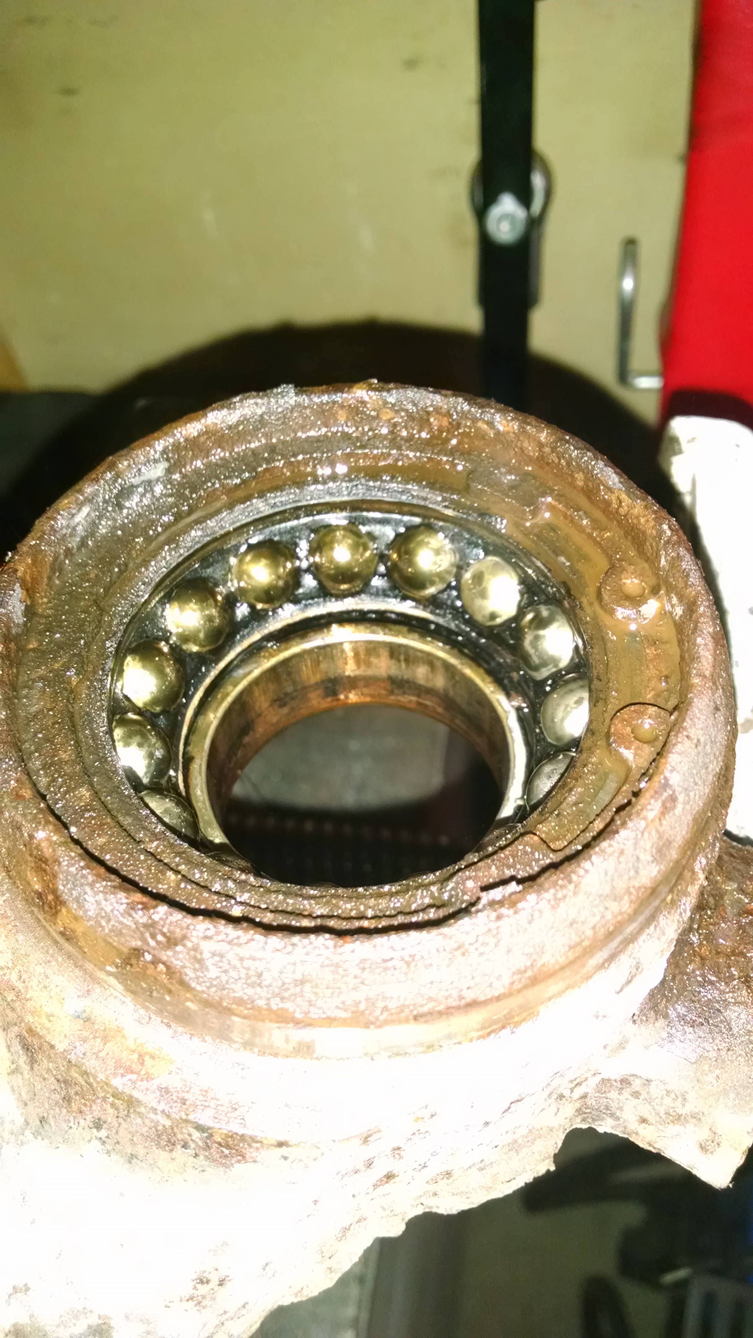 Just add checking front wheel hub for play, to the list of weekly things to do. Along with checking chinese sphericals for play.