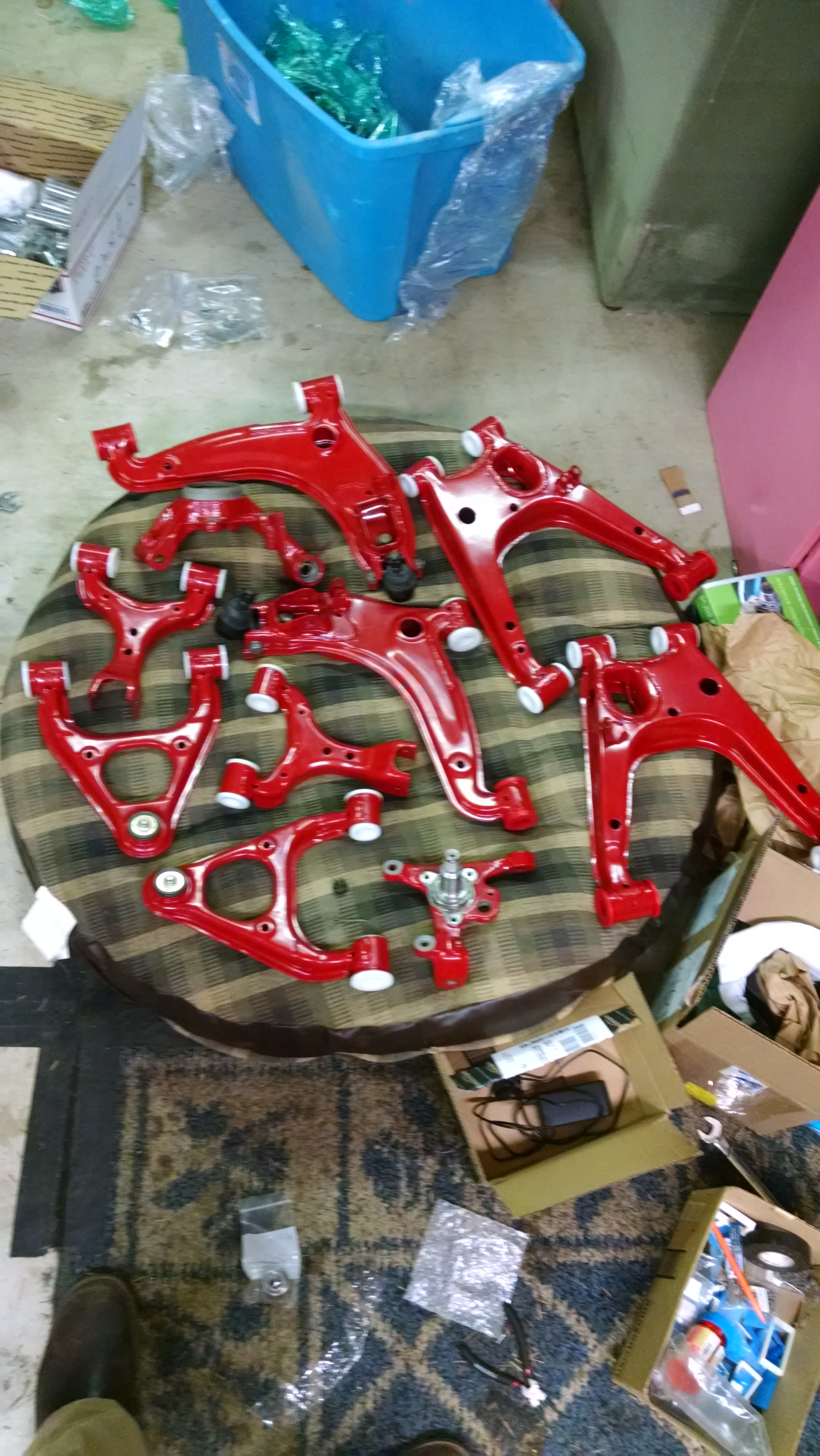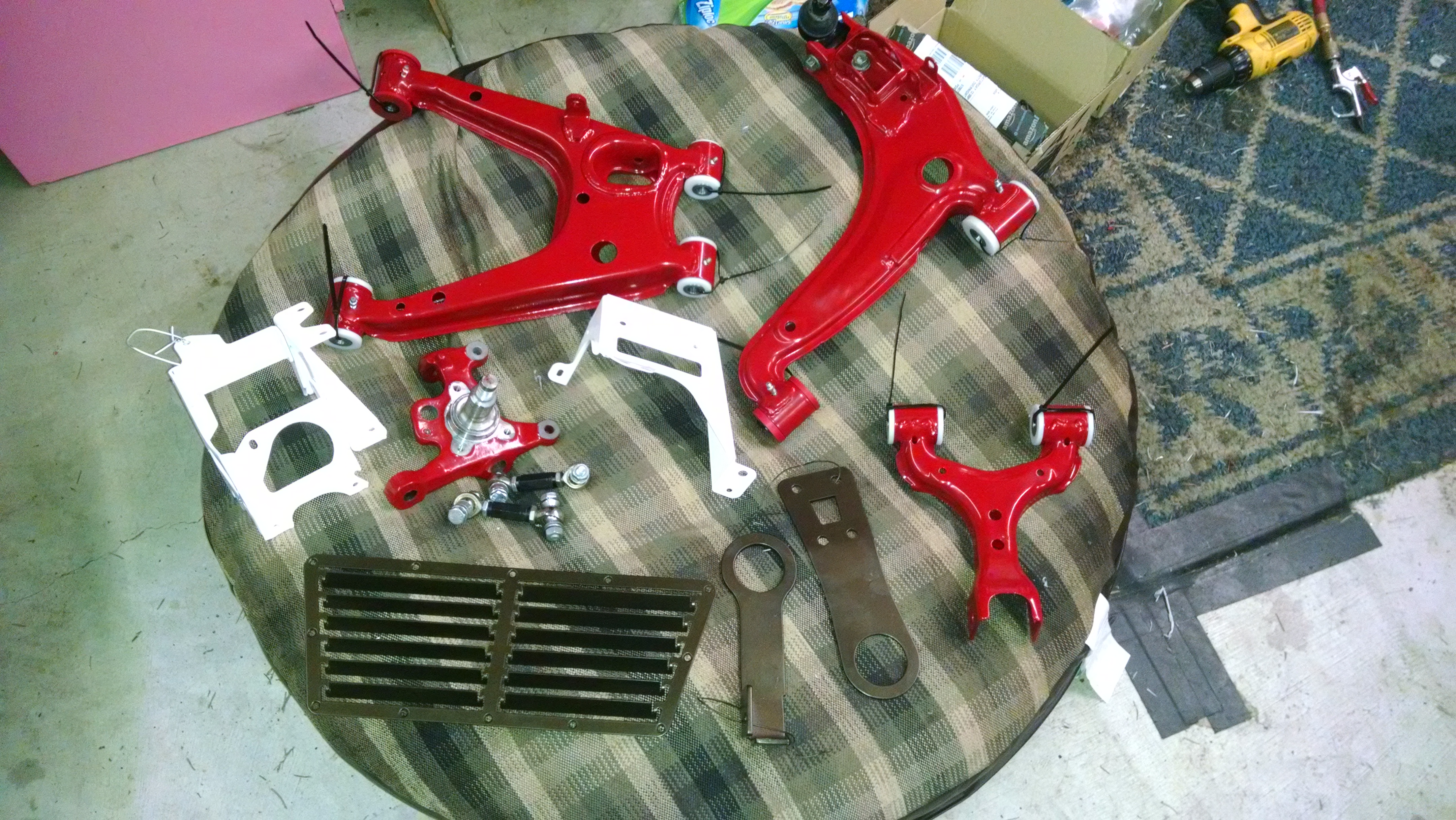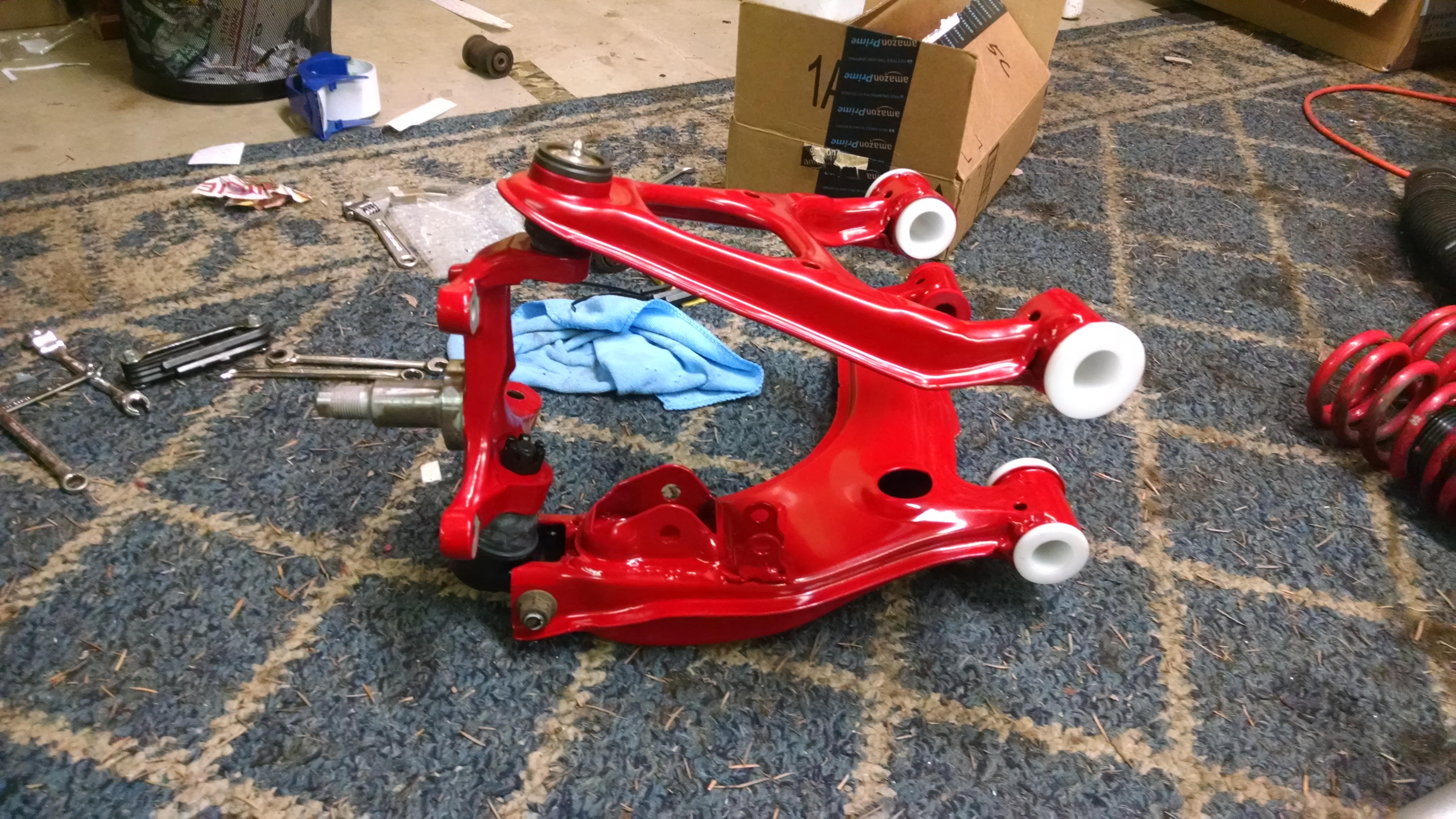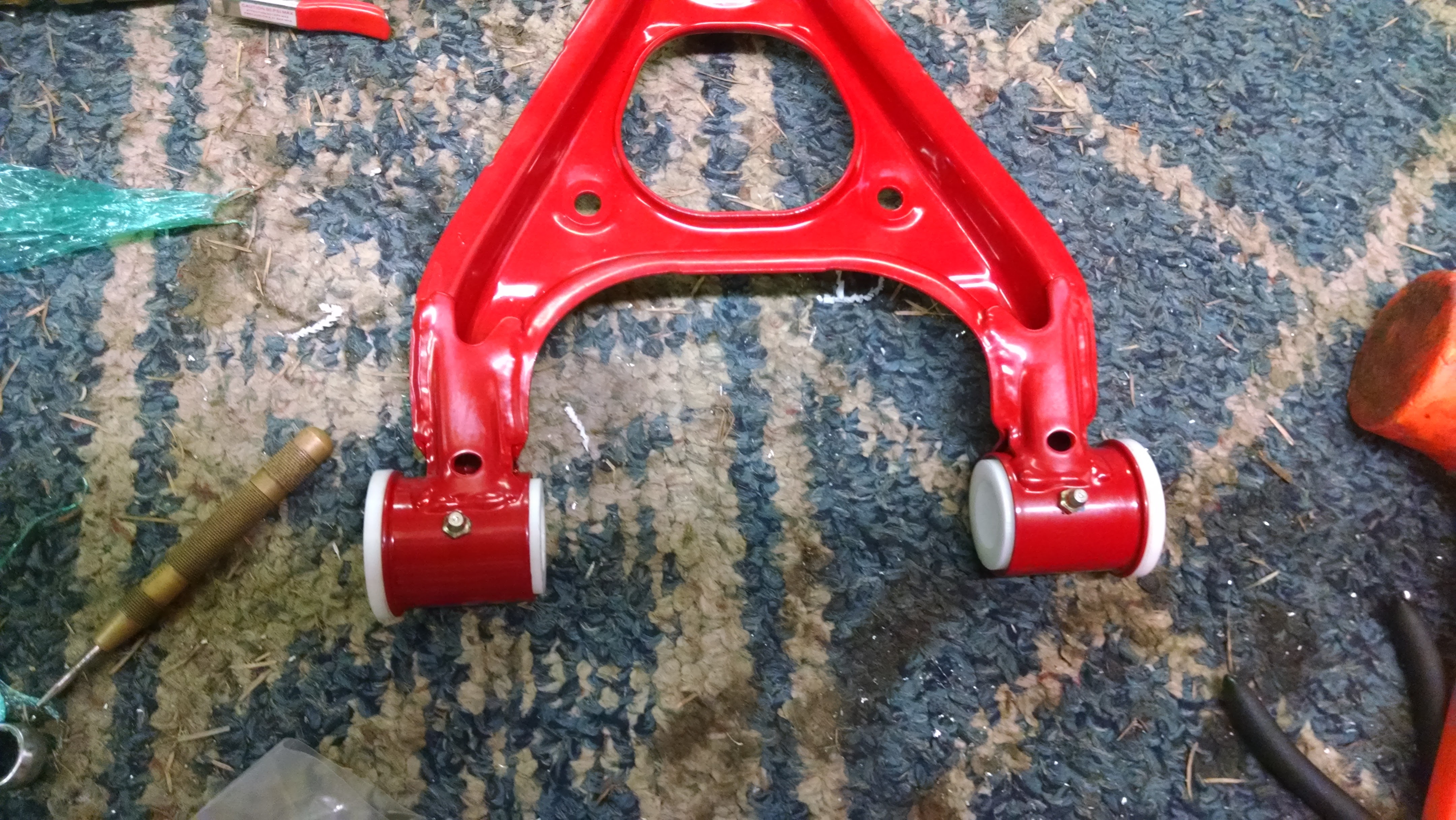 Bunch more pictures. Install is going well so far. Needed to borrow a big drill to bore out the Delrin but otherwise got everything else done. Drilled and tapped all the arms except the RUCA for zerks (need to test clearance on that one. I can't get over how good these things look.