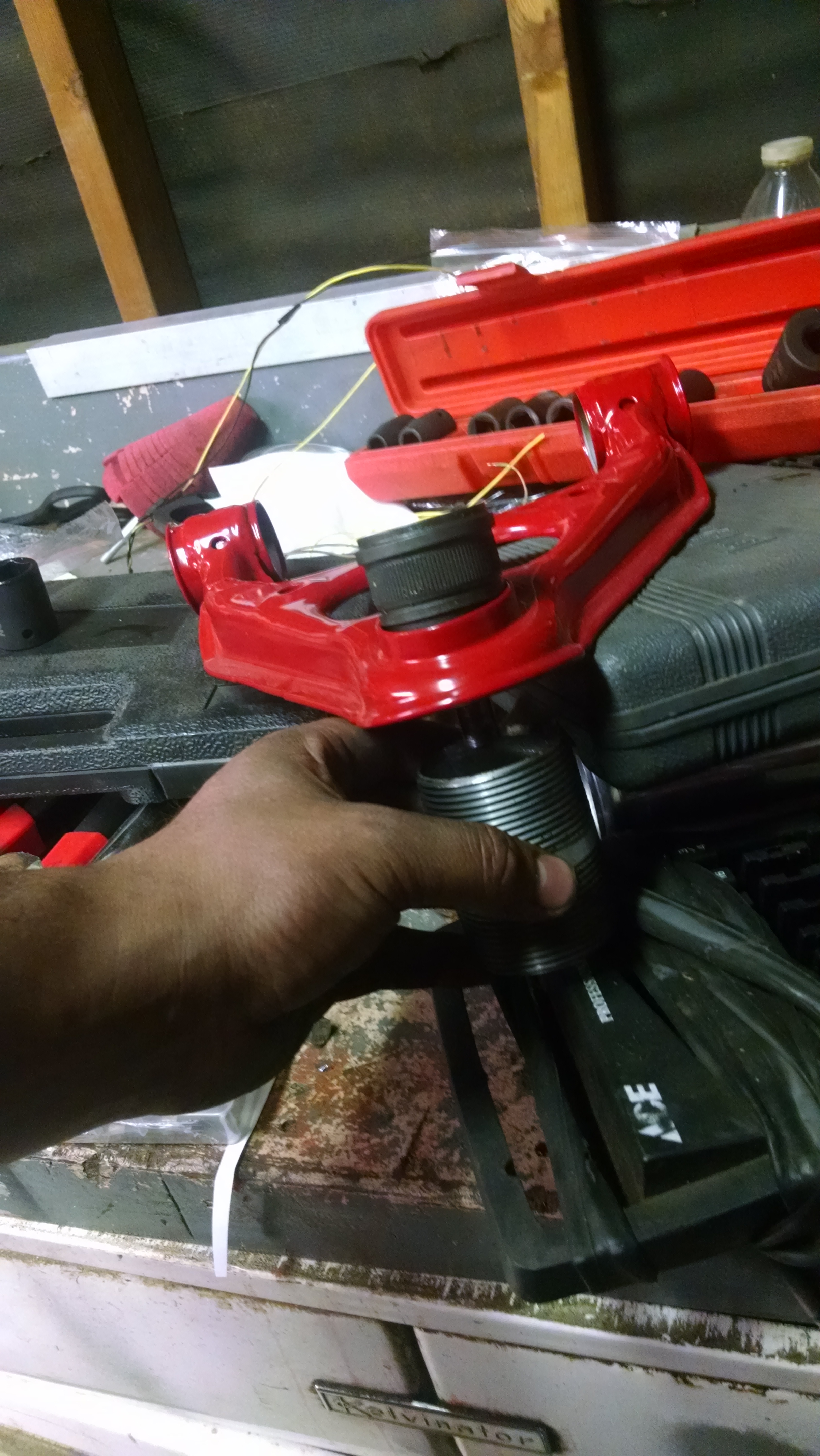 The HF ones suck, I have a bluepoint (low-end Snap-on brand) that looks like the HF one, but is much less crap. When I did the 929 master cylinder swap on Jason's car I borrowed a hydraulic flaring tool from another friend. It was awesome, but very spendy, similar to this one:Heavy Duty Depot: Eastwood, 11535 ? Mastercool Universal Hydraulic Flaring Kit