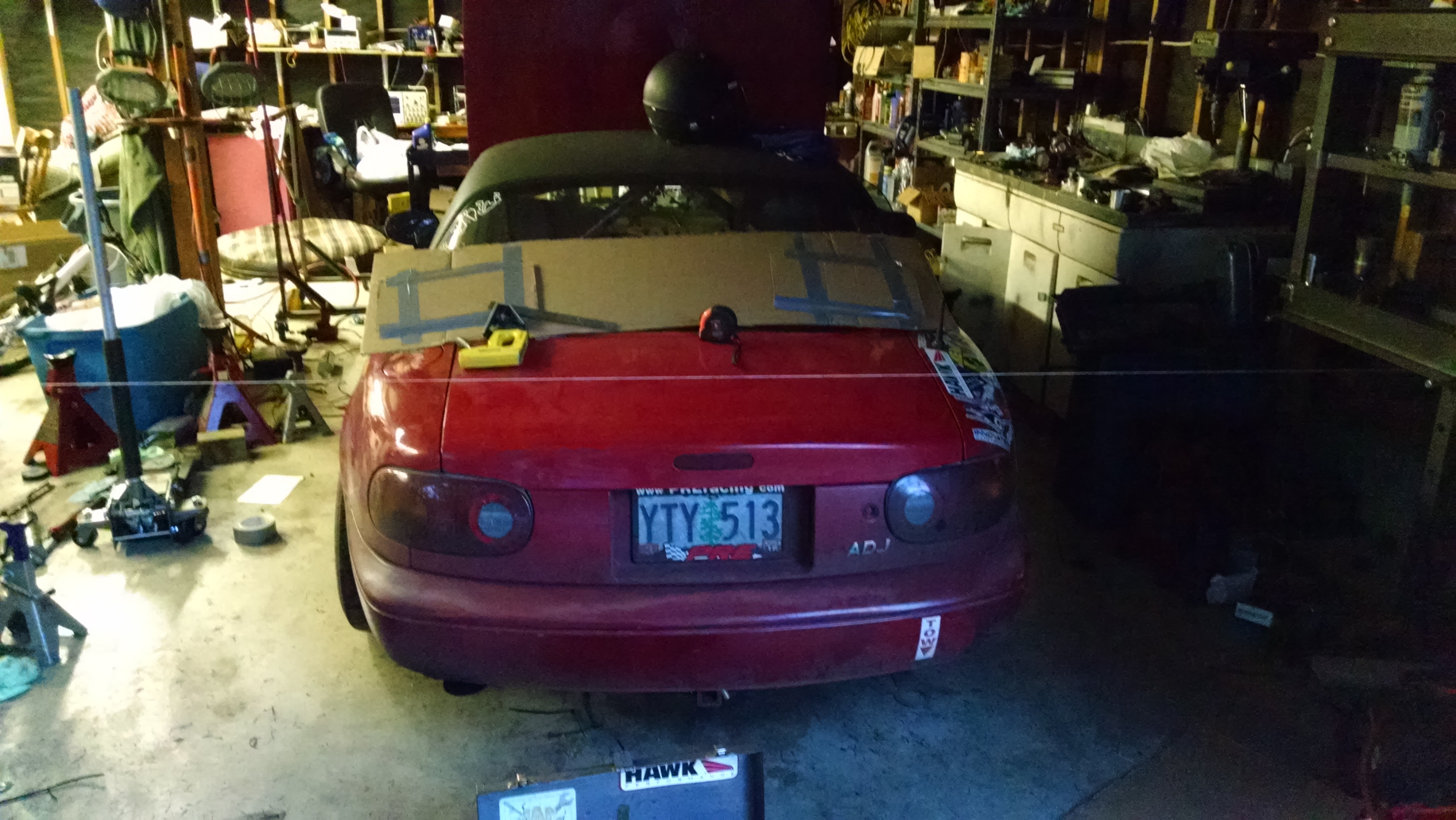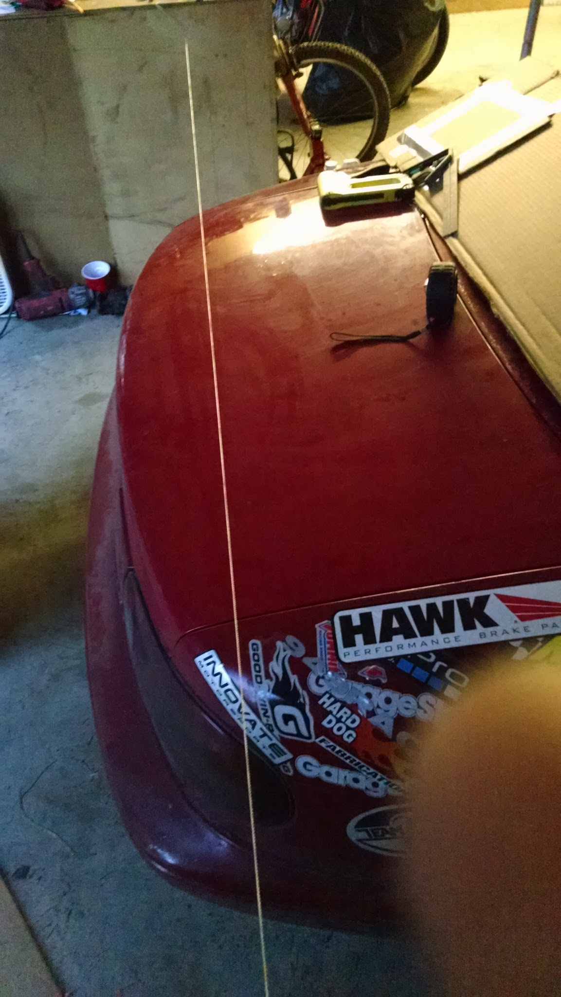 Oh, also started profiling the trunk lid to draw up a spoiler. String stapled to the walls level across the trunk lid. Will allow me to take measurements all the way across.