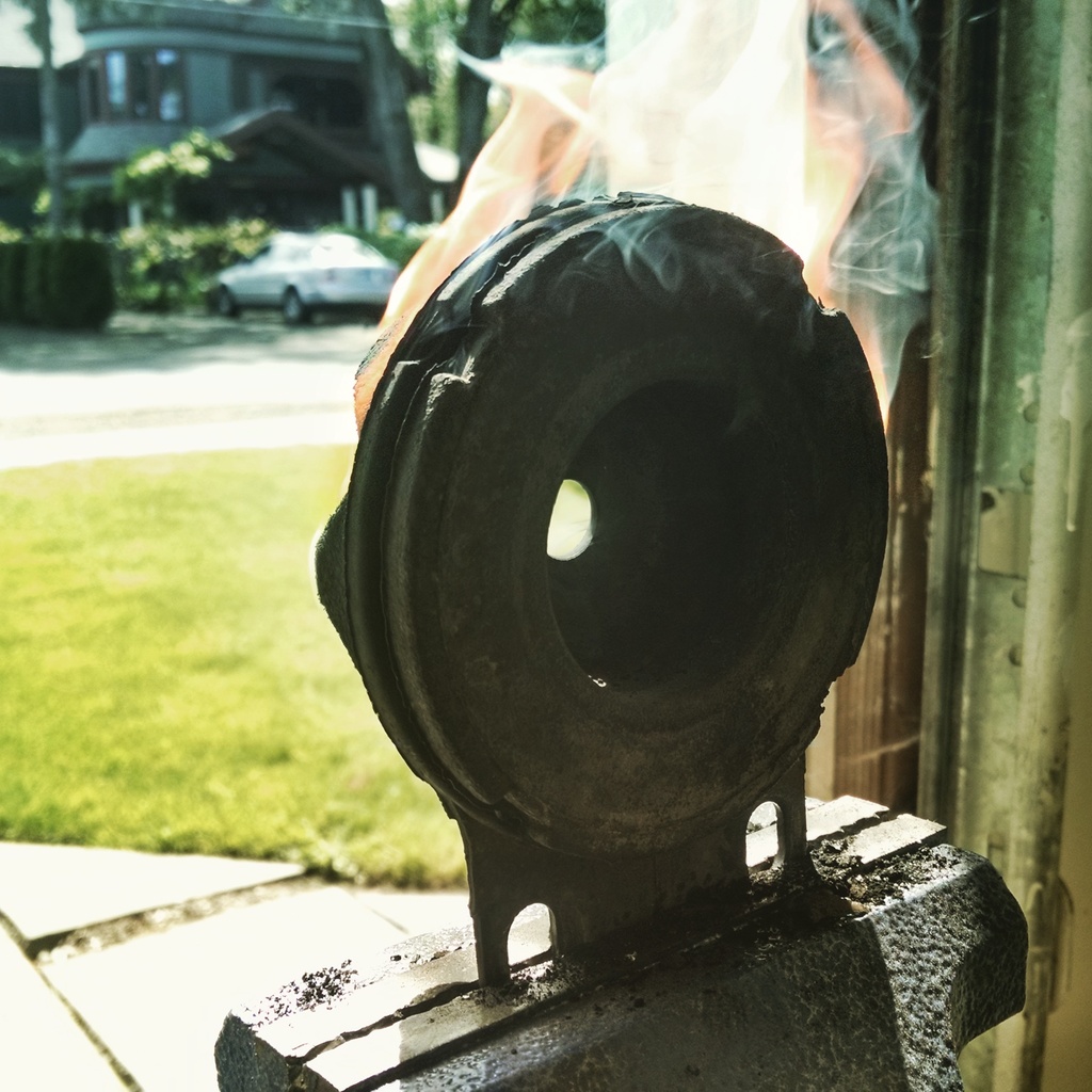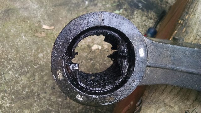 Upper, lower, it's all confusing. You burn it off the pictured piece. Some say you can just heat it up and loosen the bond between the metal and rubber... I found it was nearly impossible to keep it from catching on fire. I set up a fan to make sure I was upwind of the burning rubber and just let it burn, then cleaned up the metal afterwards with a wire wheel. Had to torch a few more small bits as well. Easy peasy.