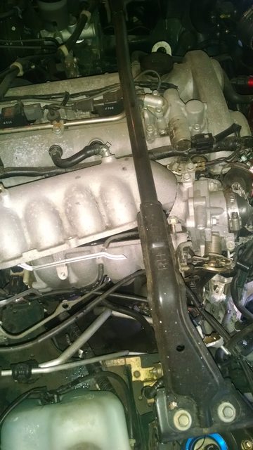 <p>Airbags were both deployed and no sign of blood or anything else. I'm amazed. This thing hit a power pole going really damn fast to push the core support all the way into the motor.</p><p>I really hope this block is good, it will give me a good base to start my 1.8 build off of, and the busted intake manifold is just an excuse to upgrade to a VICS manifold.</p><p>Also, small bonus. Strut bar! Will soon be turned into a brake booster though.</p><p>Noticed some dripping gear oil on the cat under the shifter, not sure where it came from, a little scared though.</p>