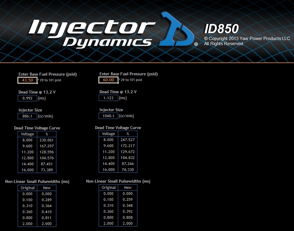 <p>Yes, I found that right after I asked. Odd that the listed dead times for the GT500 injectors are so much lower than the 725s. I wonder if there is an equation to it or if it is just pure testing. Maybe I will try and find out