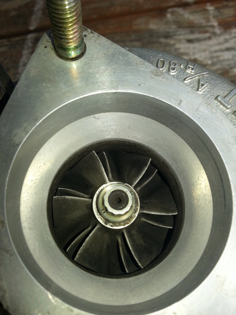 I did notice a SMALL amount of marring on the impeller blades. It doesn't look like anything went through the turbo, just a slight bit of "rash" on the edges. I'm not sure if this is from someone not running a filter? Other than that, it looks pretty clean ...