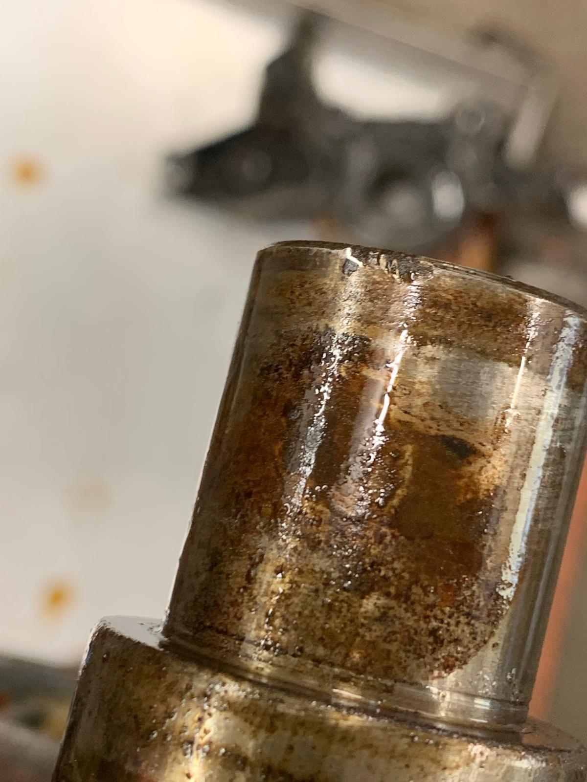 These pictures are from my mechanic who recently did the final crank and head inspection. Some light scoring on the crank - should be able to get those lapped at the machine shop.