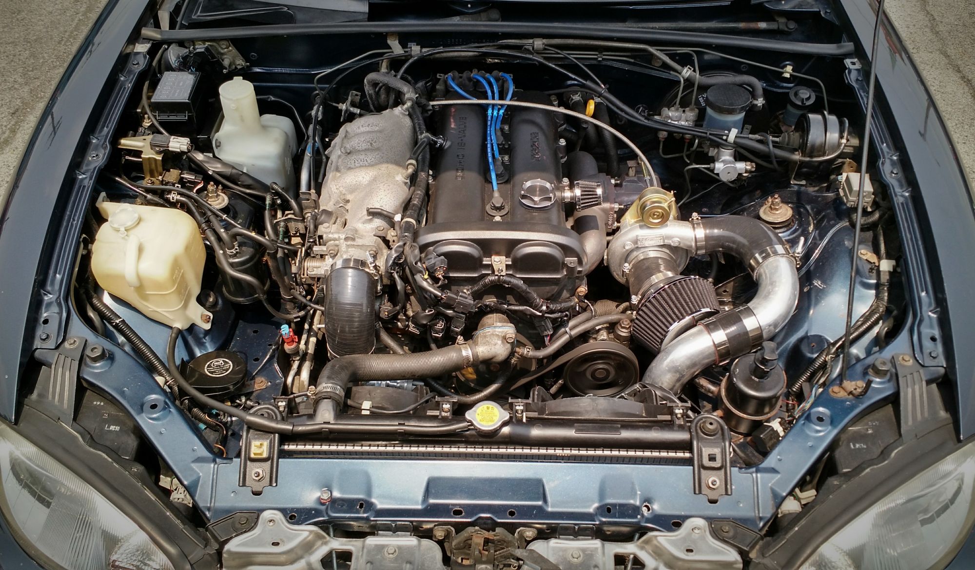Hated the dual tips so I picked up a cheap eBay axleback. Also fabbed up an intake. The car kept overheating after a while of driving & I figured it was because the radiator wasn't getting enough airflow which probably doesn't help. Well, my fans are not turning on at all. I must have messed up a wire or something. Car is fun though! 8 psi of boost is plenty enough.