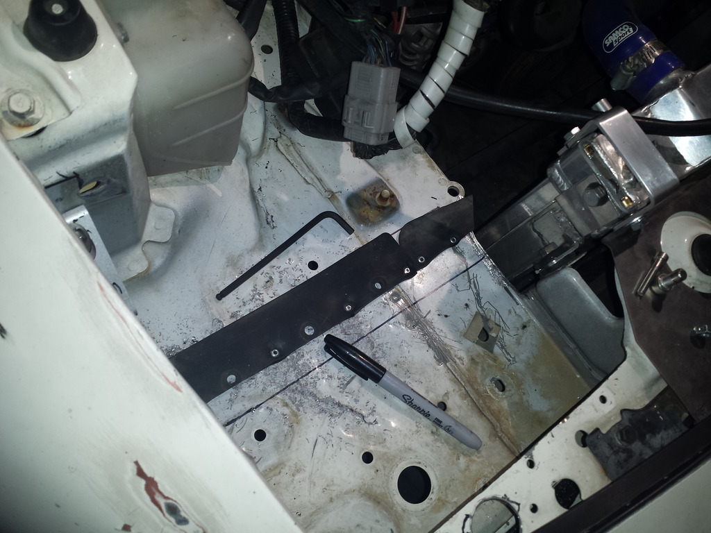 This is the piece of plastic that is near the front bumper/headlight area. Riveted it there for the oil cooler to sit on so it's isolated.