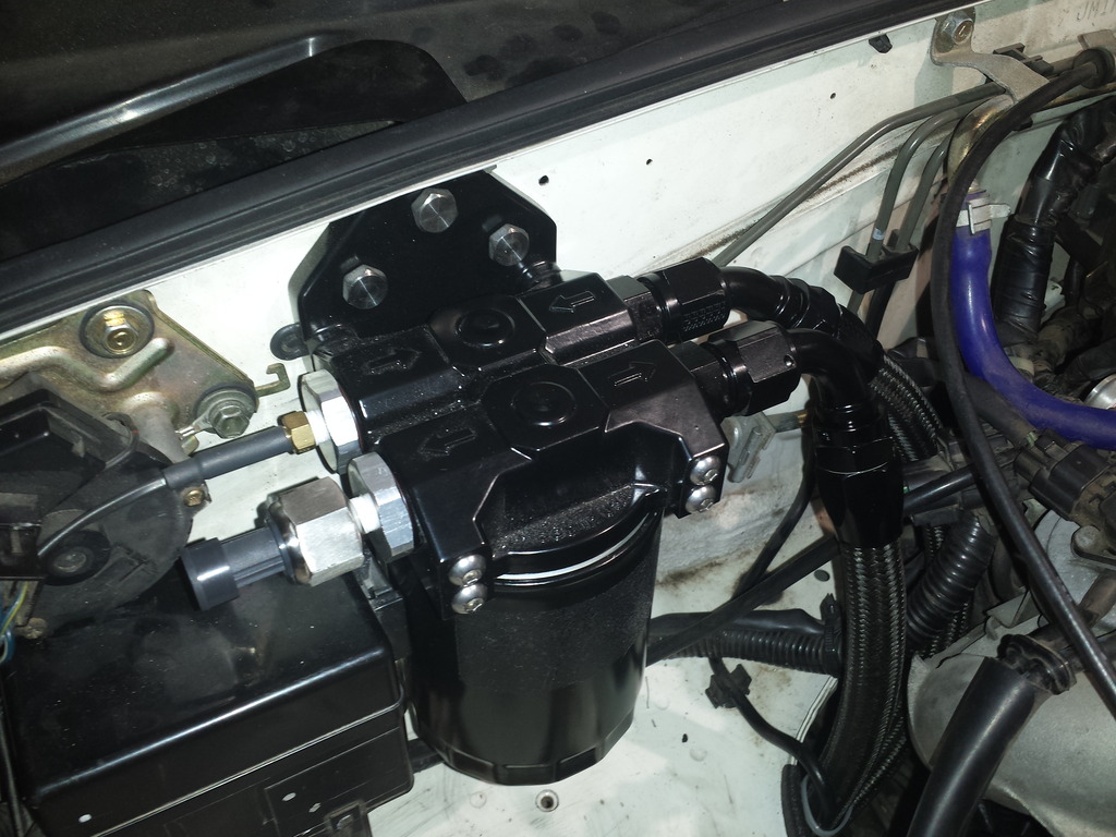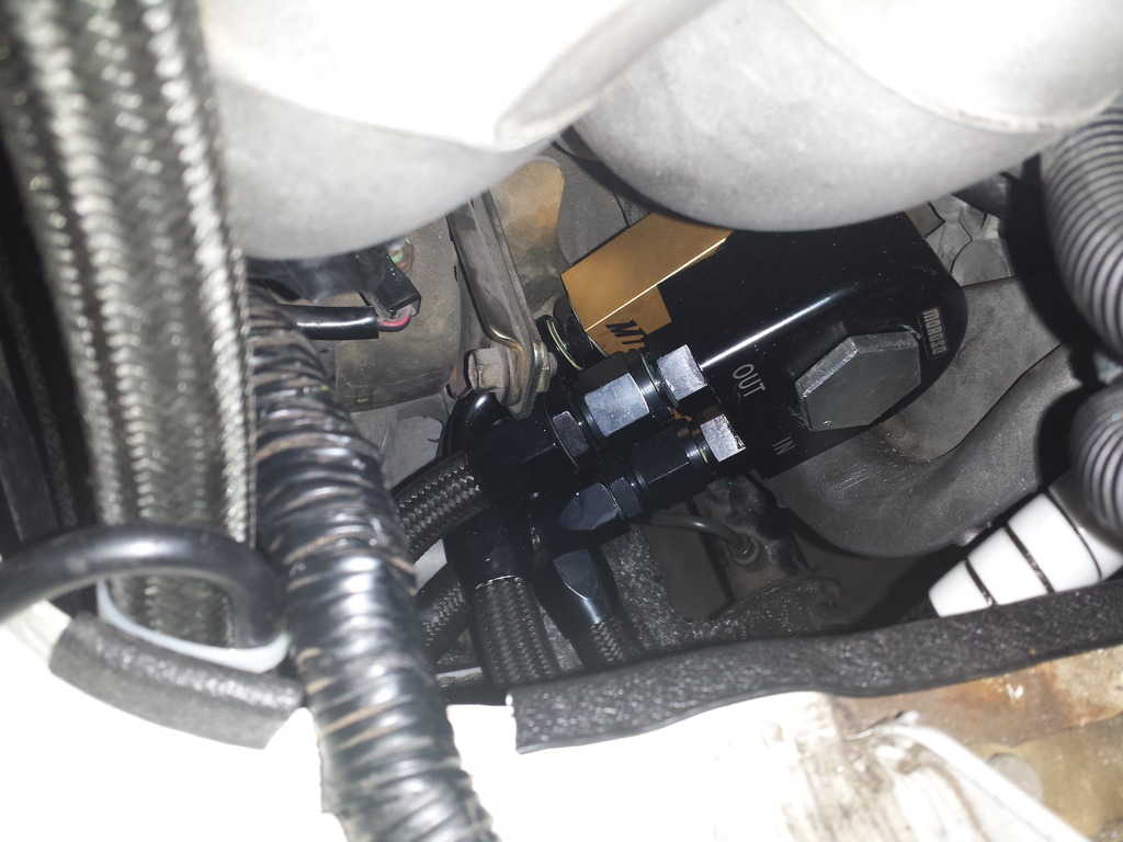 Here you can see the two -10orb plugs that I had drilled and tapped for the Full Function Engineering sensors. Can feed those into the ECU to take advantage of more of the Adaptronic engine protection features.