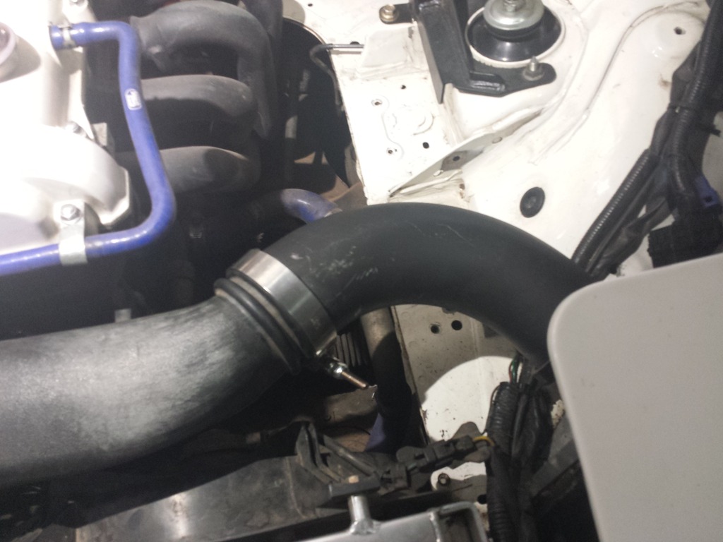 Also found this piece of aluminum pipe and a couple t-bolt clamps laying around, much smoother and simpler than the previous setup that was here which was a combination of a bunch of clamps and couplers and pieces of exhaust tubing and a 90 degree silicone bend. Can look back in this thread if you want to see a picture of how it used to be.
