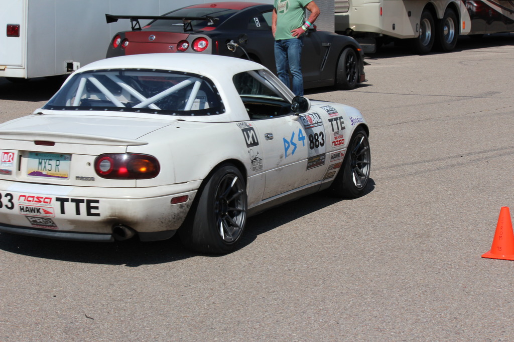 It stopped raining at about 7:30 in the morning, we missed our first session but managed to finish installing the hard top, fire extinguishers, right side nets, new stickers for classing and contingency, changed wheels, and finished buttoning up the car. Weather was awesome for the rest of the weekend, the track had dried out by about mid day on Saturday. Was a much needed escape from the 110+ degree heat here in the Phx area.