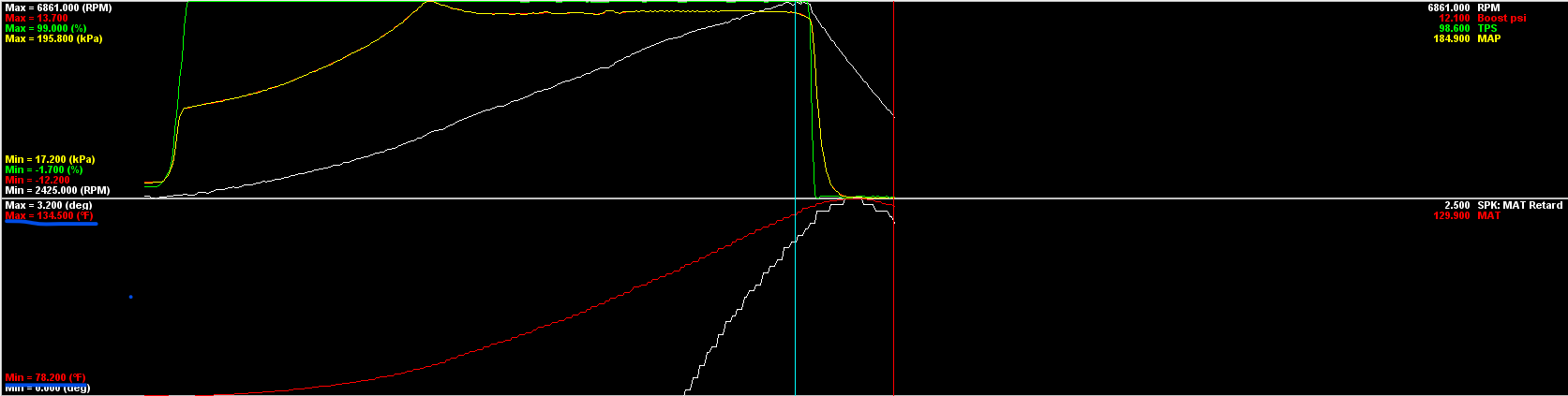 I'm very pleased with it. I don't have to worry about IATs in the heat nearly as much anymore. You can also see that this new churbo is a bit more laggy than I'd like. It hits 10psi around 3900-4000 rpm. @Fireindc 's recent build thread conviced me to pull the trigger on a certain something that will fix this issue. More on this soon!