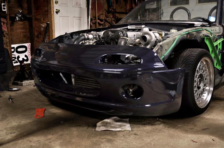 Finished the cowl cover, messed with the tune, fit/aligned the fenders and bumper, started to notch the bumper so the tow hook will work, marked the tow hook so I know where to bend it, and cracked the **** out of the bumper. Oohz wellz.