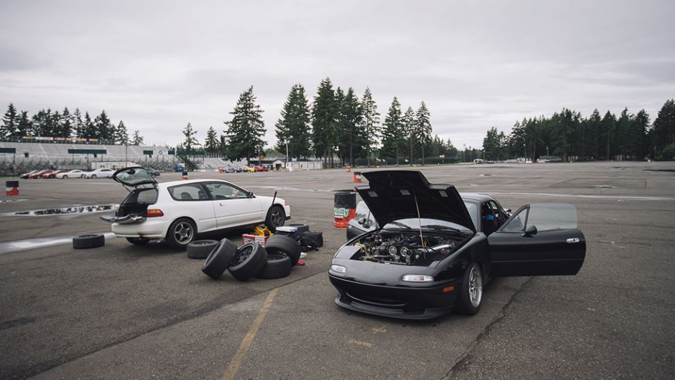 Over the years I had collected parts from all the Miatas I wrote off. Not really having the budget to do a "full build" so there were different stages of mods I had done. I think I was the first and only person that I knew of that had a stock 1.6L with lightweight flywheel with a 6spd tranny and 4.3 FD. Lots of fun with that gearing and it was really fun to flog around on track. The engine was nice and healthy, and the car it came out of (my silver NA) was soooo clean that when I picked up the car, the boot cover still had its pleather smell.